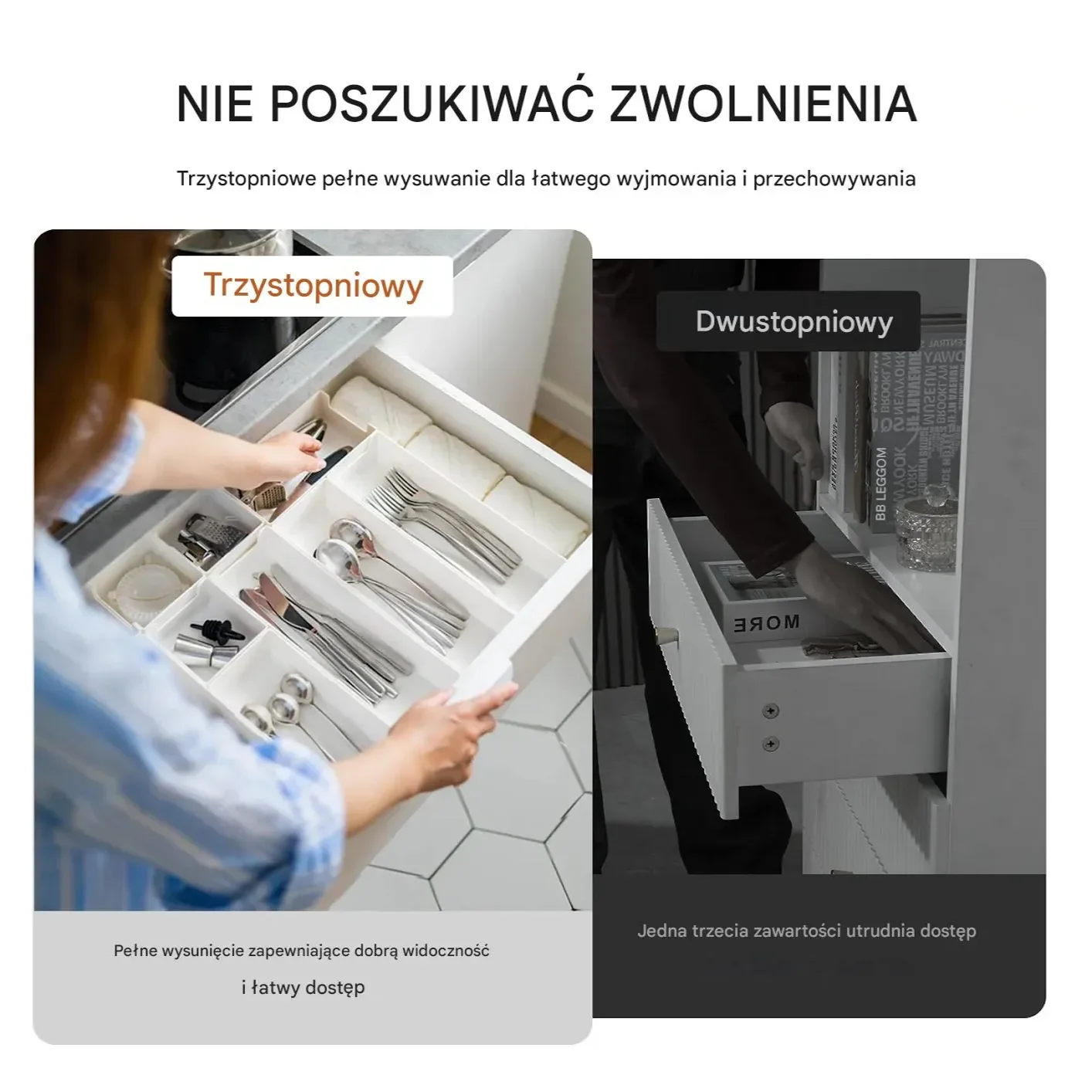 - ✅ Pełne wysuwanie trójstopniowe: Całkowity dostęp do zawartości – koniec z szukaniem przedmiotów w głębi szuflady.