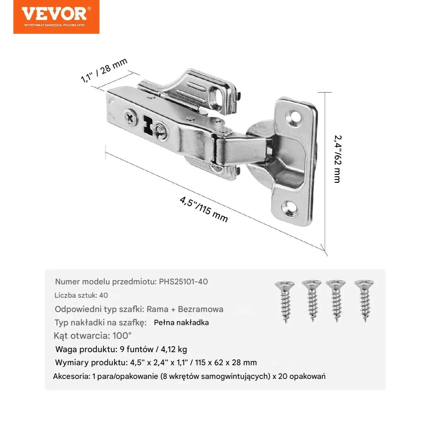 • 50 x zawiasy meblowe z pełnym nakładaniem