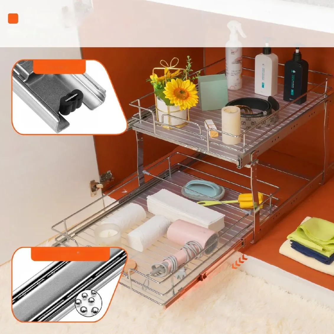 - Dzięki dwupoziomowej konstrukcji, łatwo zorganizujesz naczynia, produkty spożywcze czy inne akcesoria kuchenne.