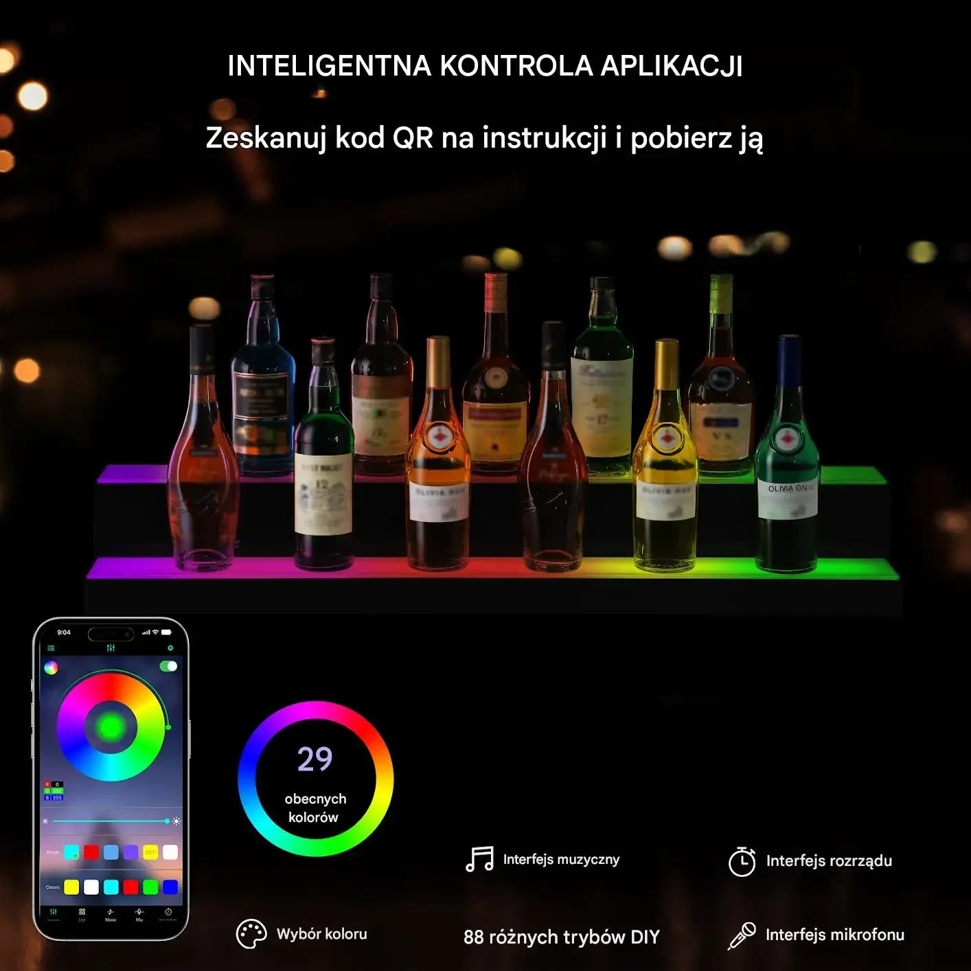 Podświetlana półka na butelki LED 102 cm – sterowanie RF & aplikacją mobilną