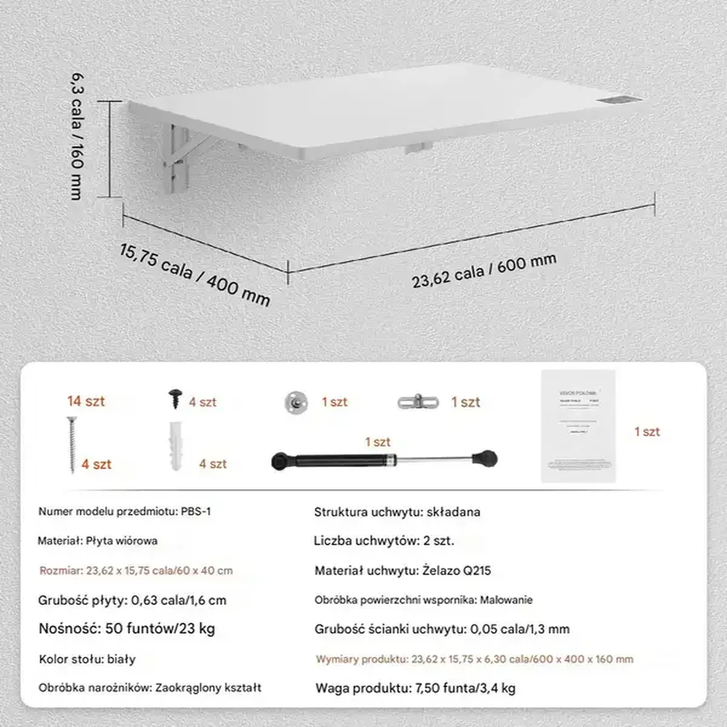 Stół ścienny Stolik składany Biurko składane wiszące 100x50cm