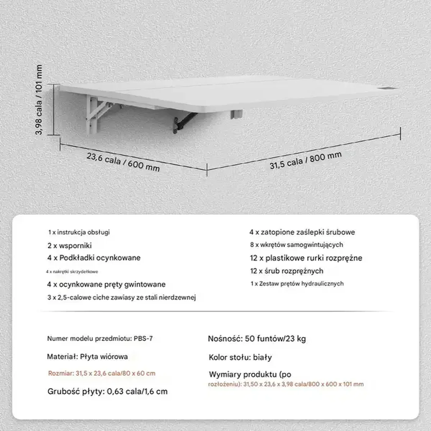 Zainwestuj w składany stół ścienny 80×60 cm i ciesz się praktycznością, stylem oraz oszczędnością miejsca! To doskonały wybór dla tych, którzy chcą funkcjonalnie urządzić swoje wnętrze. Kliknij „Kup teraz” i zyskaj więcej przestrzeni w swoim domu!