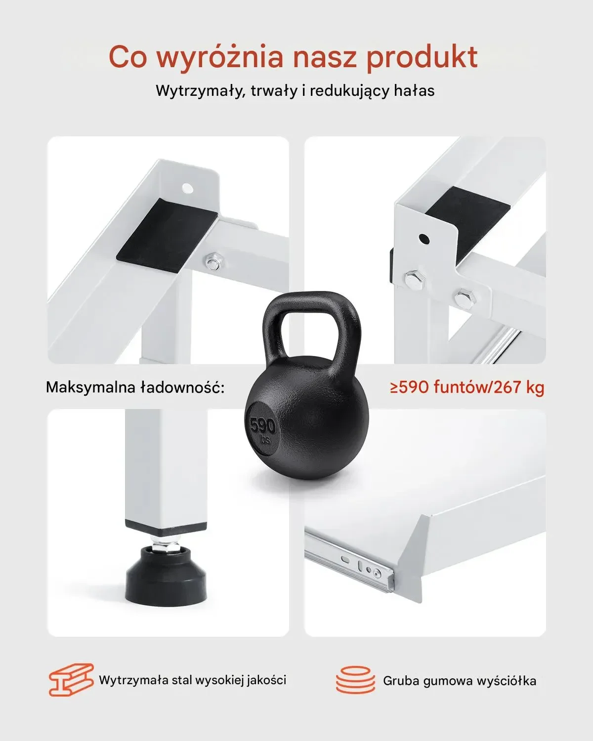 • Wytrzymała konstrukcja: Wykonana z stali węglowej, udźwig do 267 kg, idealna do wszystkich standardowych pralek i suszarek