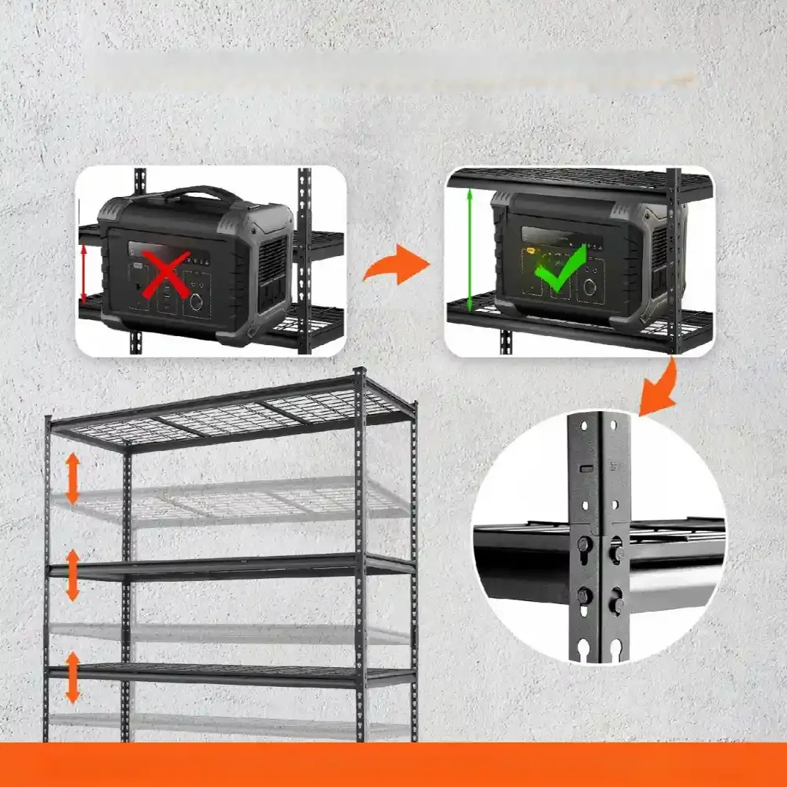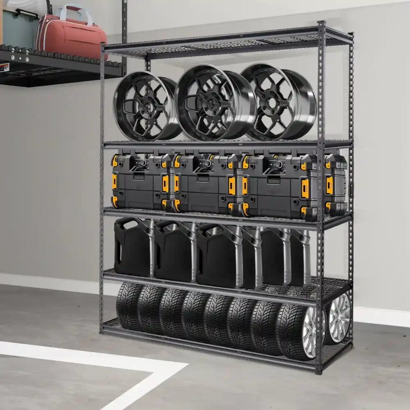 • Garaż: Idealny do przechowywania narzędzi, opon, sprzętu sportowego i innych ciężkich przedmiotów.