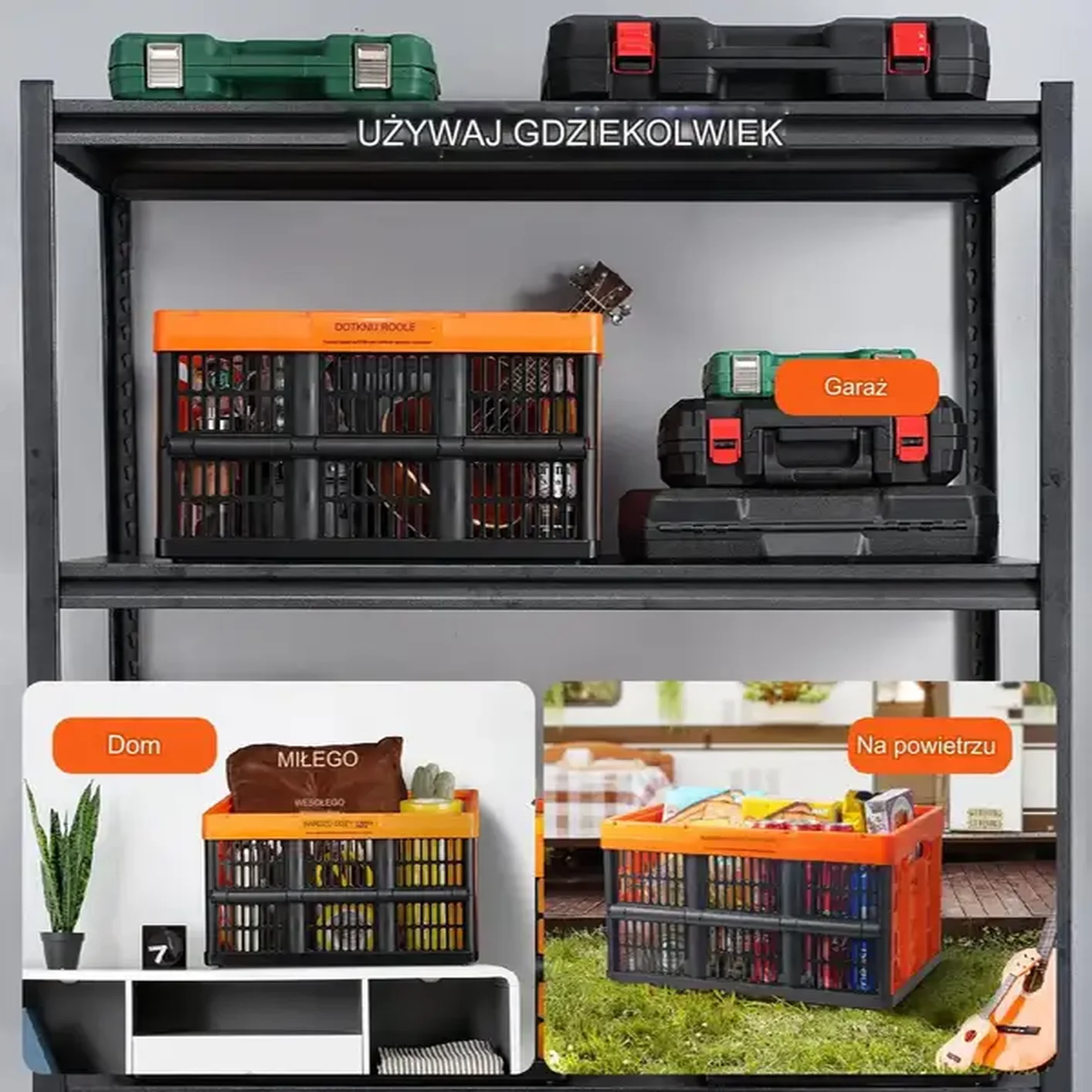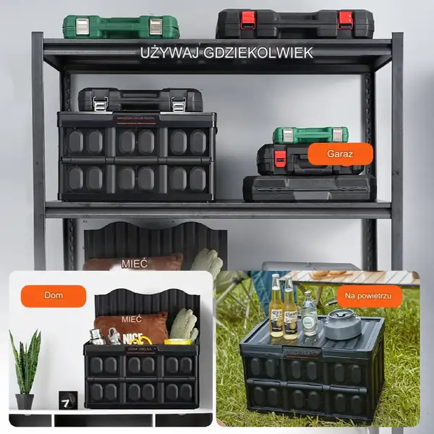 Składany pojemnik sprawdzi się w wielu sytuacjach – od transportu, wycieczek, kempingów, aż po przeprowadzki. Jest idealny zarówno do użytku domowego, jak i na wyjazdy, gwarantując wszechstronne i wygodne przechowywanie.