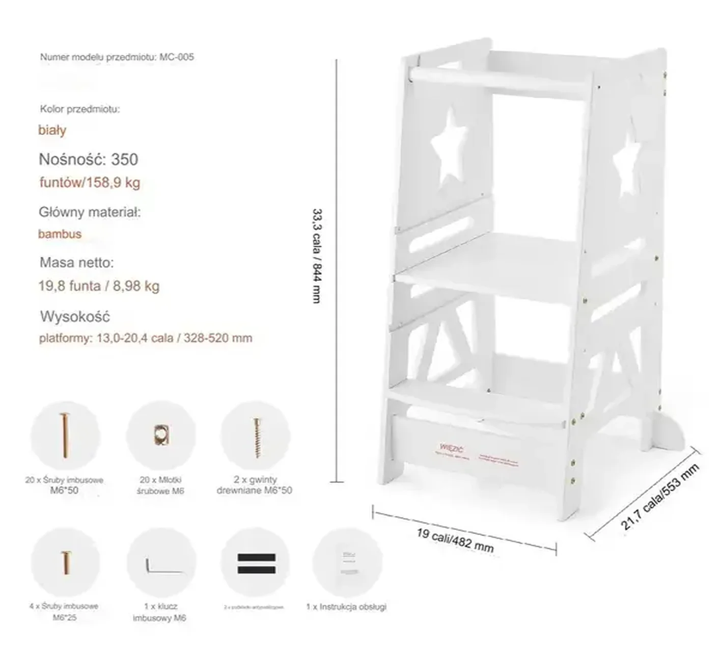 Start / Sklep / Dom i Ogród / Meble / Pokój dziecięcy / Stoliki i krzesła / Pomocniki kuchenne / POMOCNIK KUCHENNY PODEST STOŁEK DZIECIĘCY DREWNIANY BIAŁY
