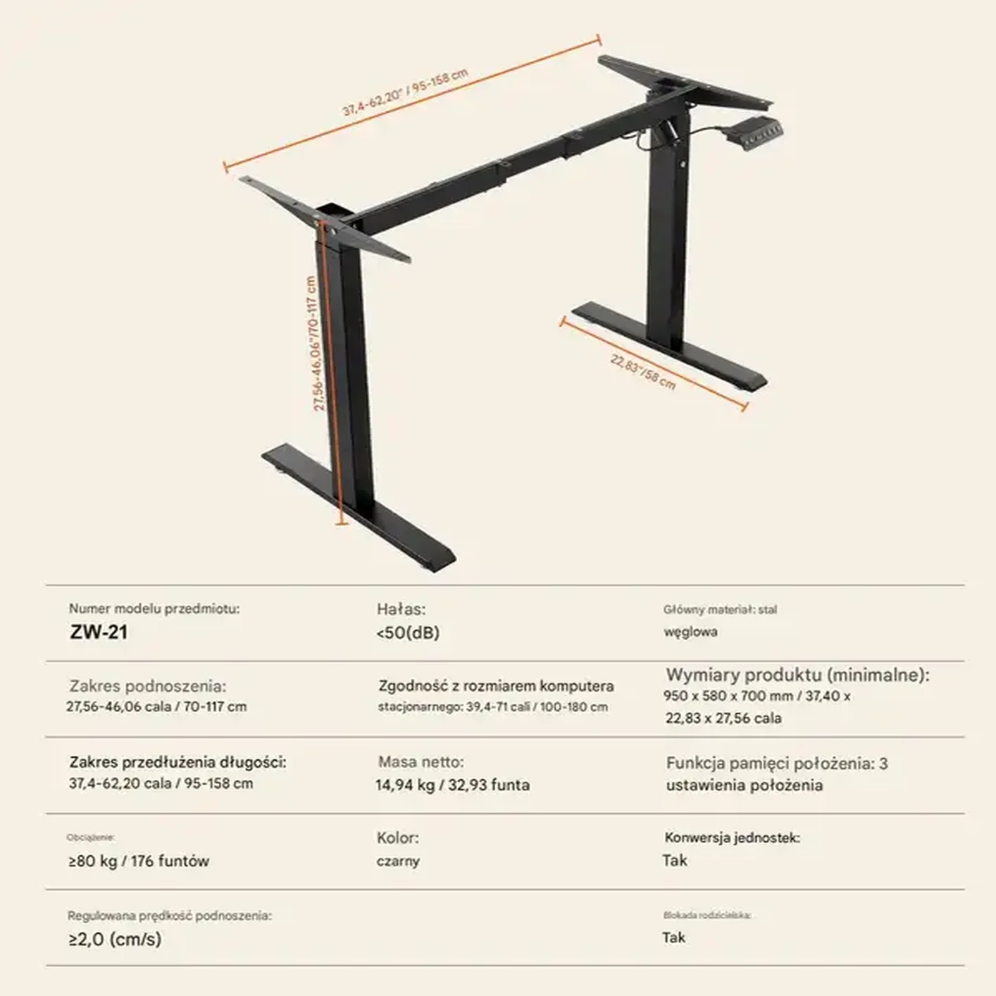- Szybka regulacja➡️ Prędkość podnoszenia ≥2,0 cm/s, kontroler LED z pamięcią 3 ustawień.