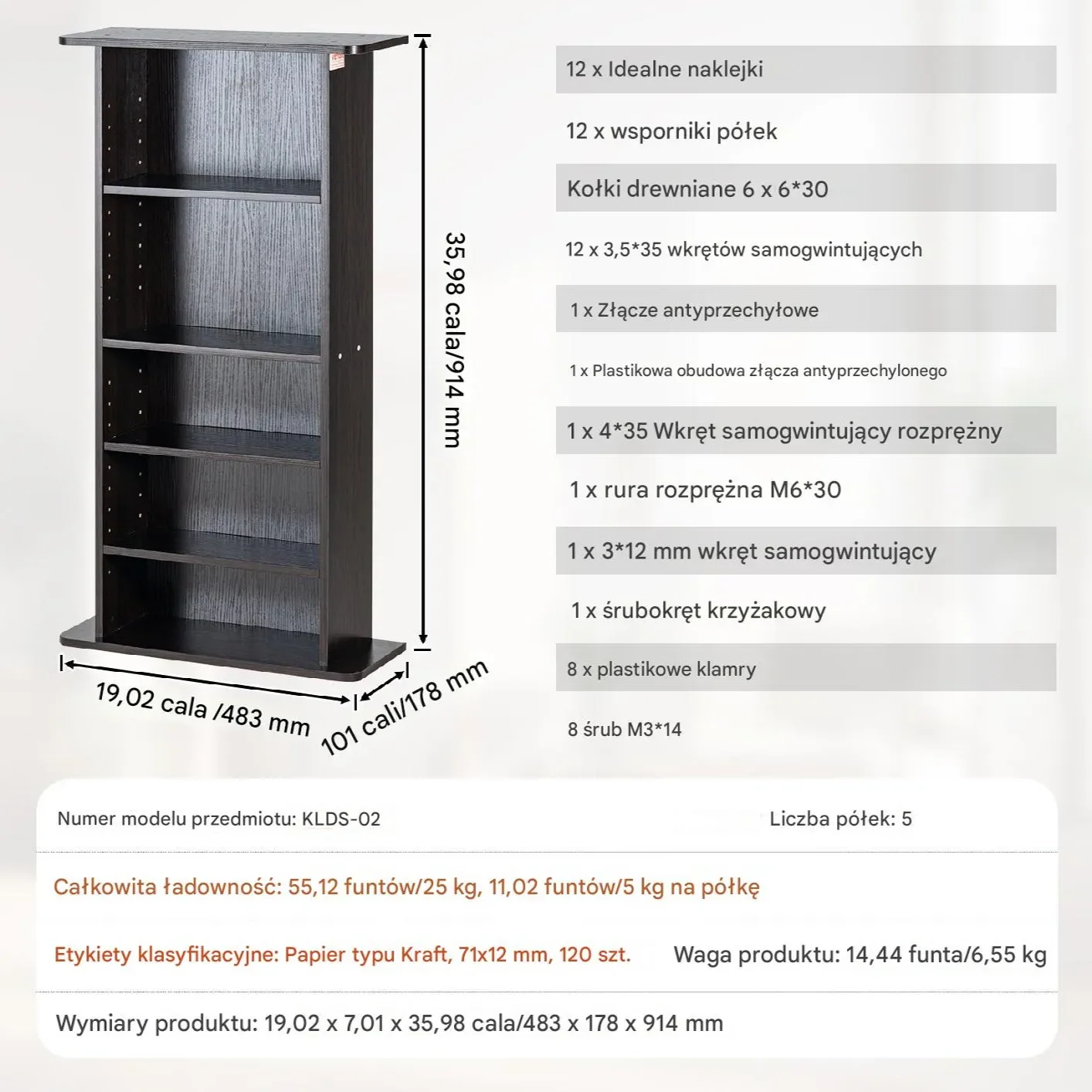 - ✅ 5 regulowanych półek – elastyczna organizacja przestrzeni