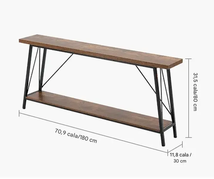 Konsola wąska 180 cm 2-poziomowa metalowa półka do salonu i przedpokoju