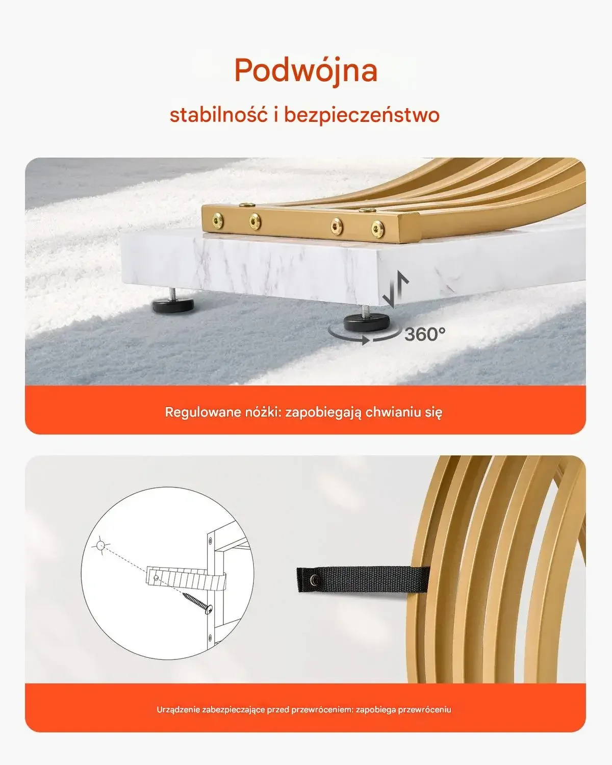 - ✅ Stabilność na każdej podłodze: 4 regulowane stopki niwelują nierówności i chronią podłogę przed zarysowaniem