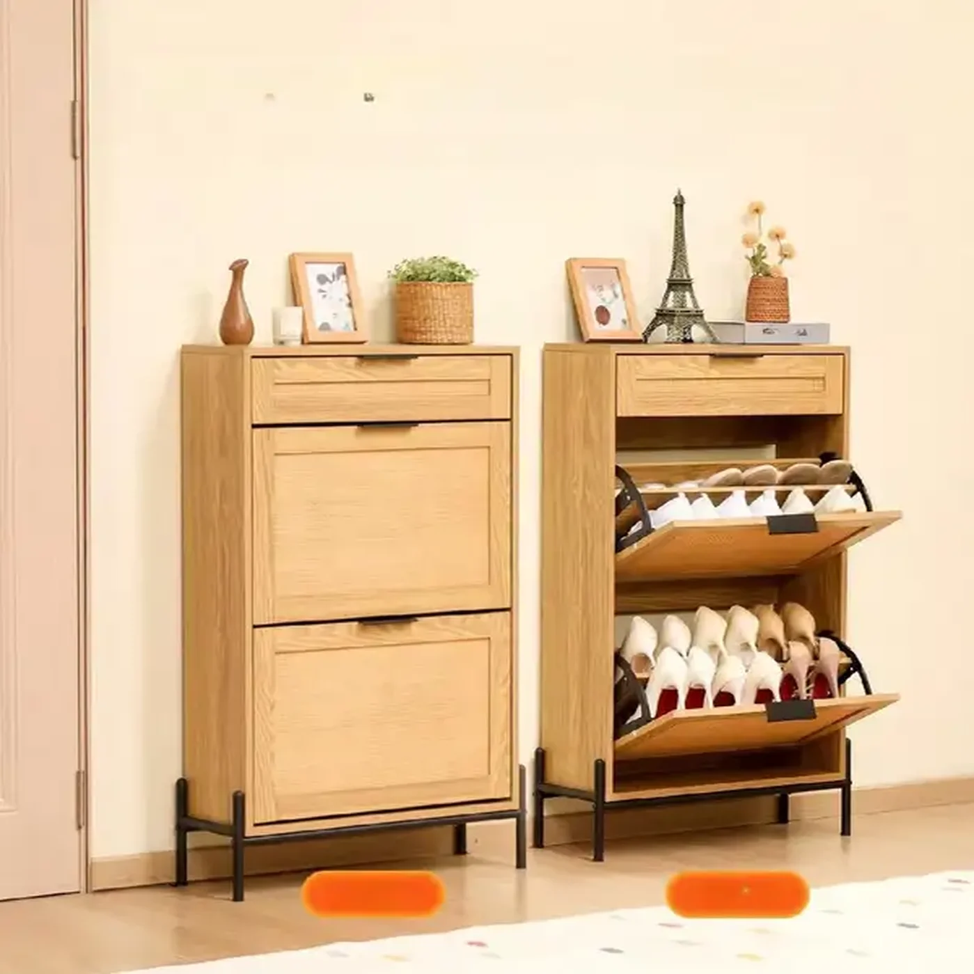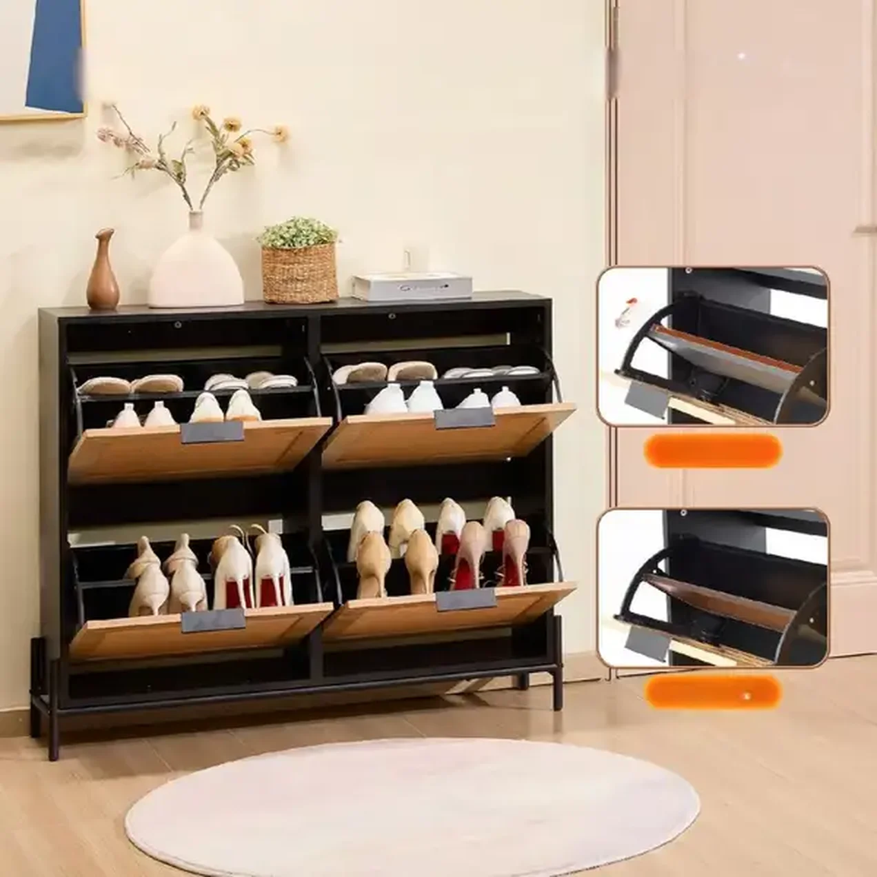 - ✅ Pojemne szuflady: Dwie uchylne szuflady maksymalizują przestrzeń na buty.