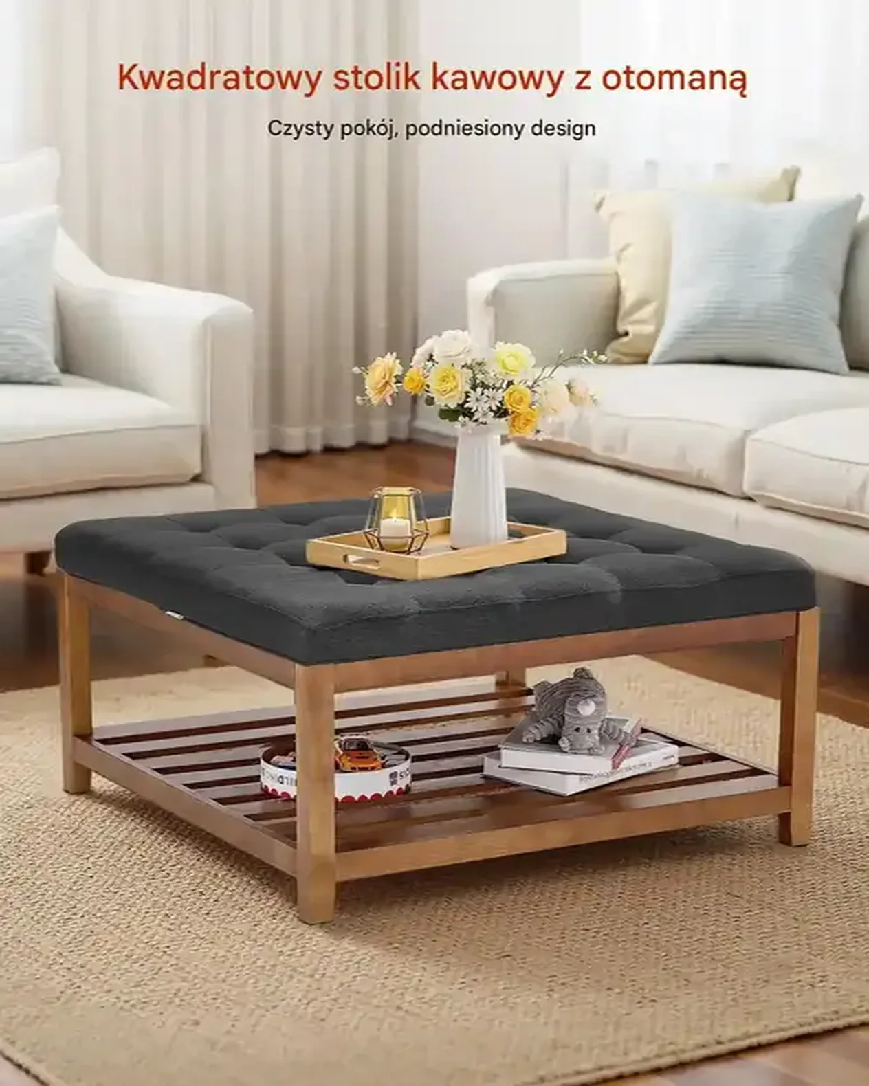 Start / Sklep / Dom i Ogród / Meble / Salon / Stoliki i ławy / Pufa stolik kawowy kwadratowy 87,5cm z półką tapicerowana – salon/sypialnia