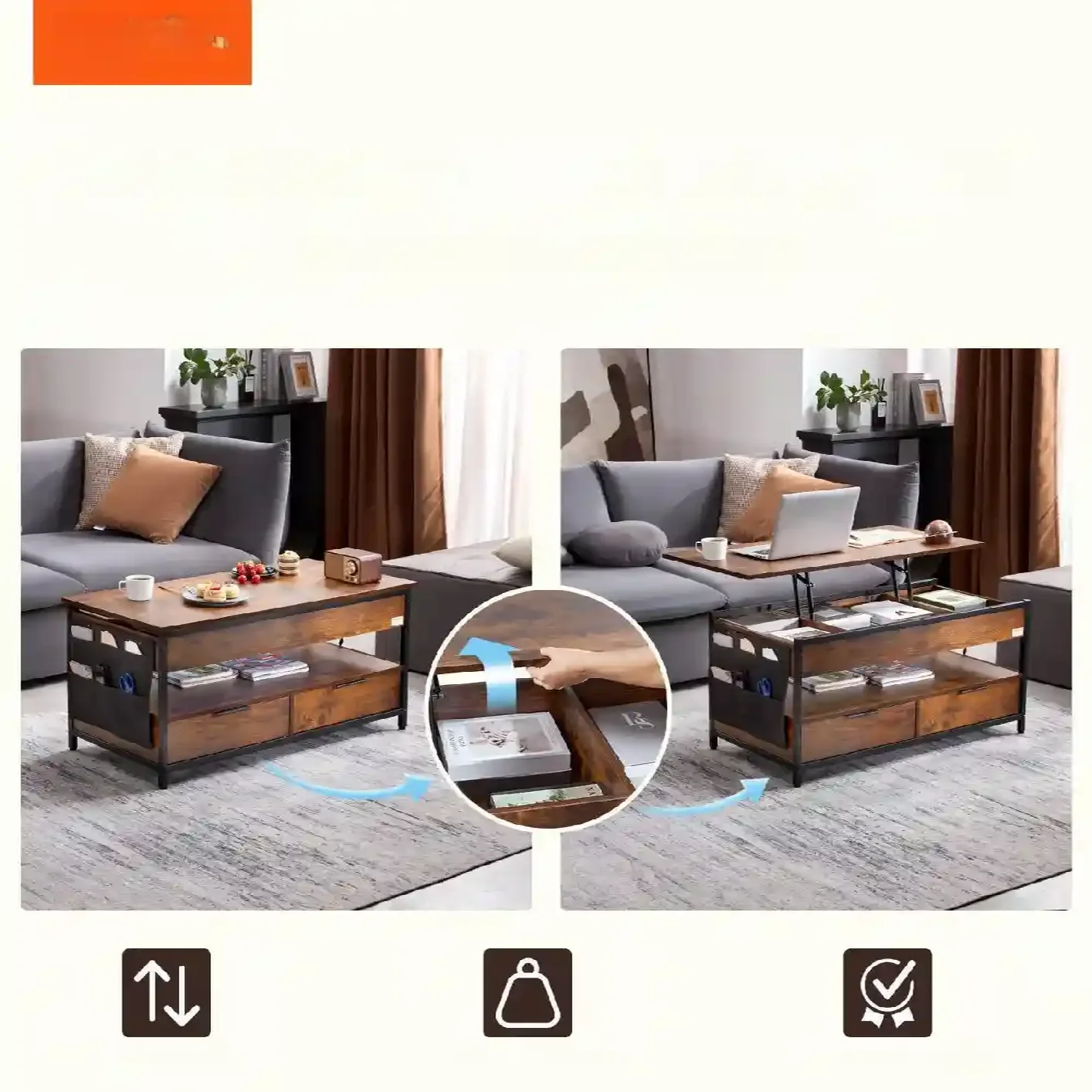 Funkcjonalny stolik kawowy z podnoszonym blatem – Odkryj wygodę na co dzień!