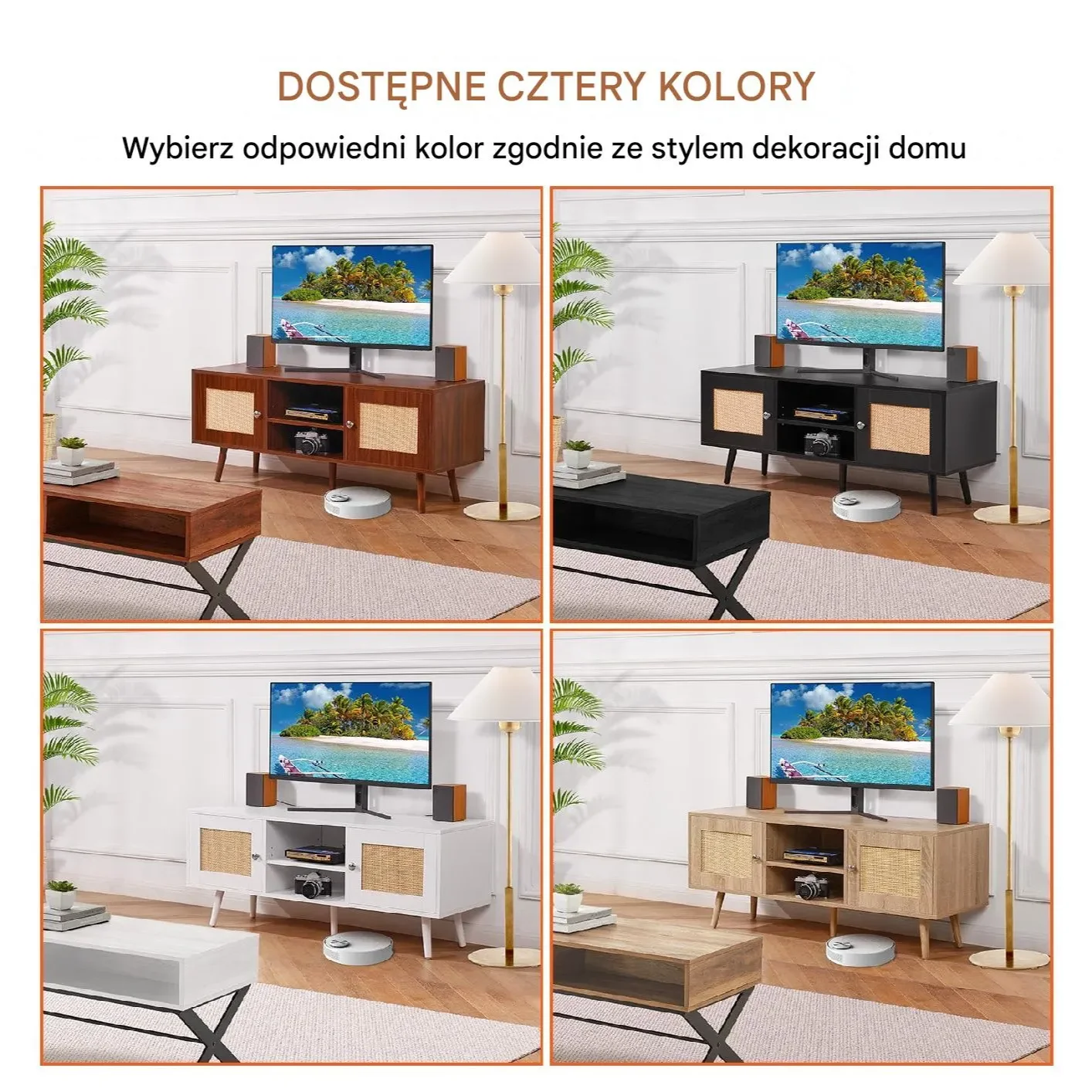 - ✅ Styl mid-century modern z naturalnym rattaniem