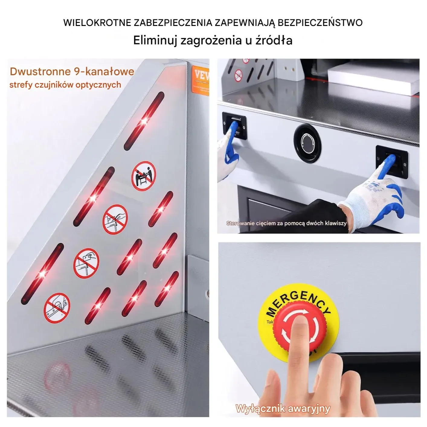 - ✅ Wielowarstwowe zabezpieczenia: Dziewięć czujników fotoelektrycznych zapewnia bezpieczeństwo w trakcie pracy.
