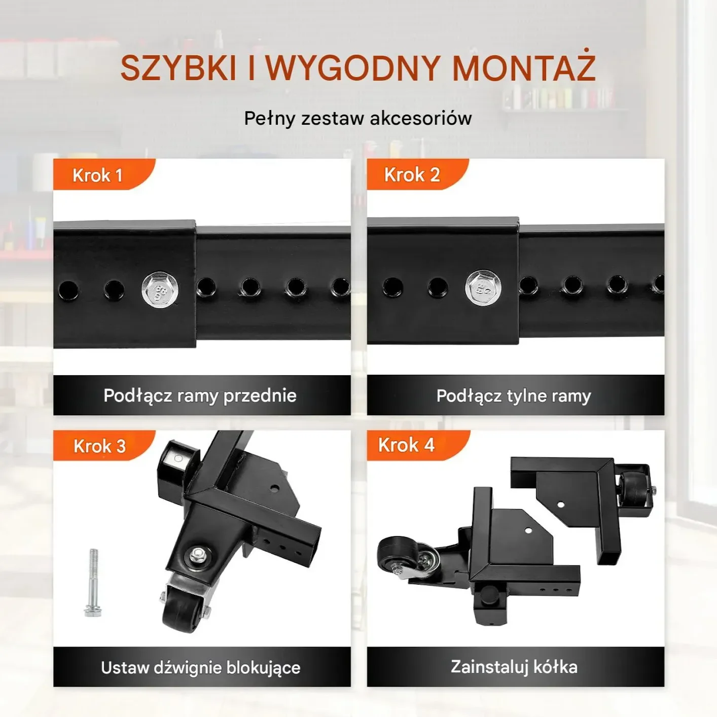 - ⭐ Warsztaty i garaże: Łatwe ustawienie maszyn stolarskich lub narzędziowych