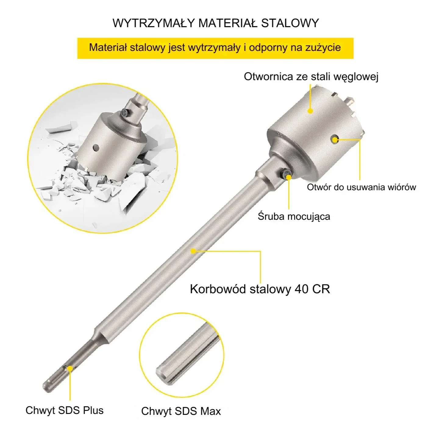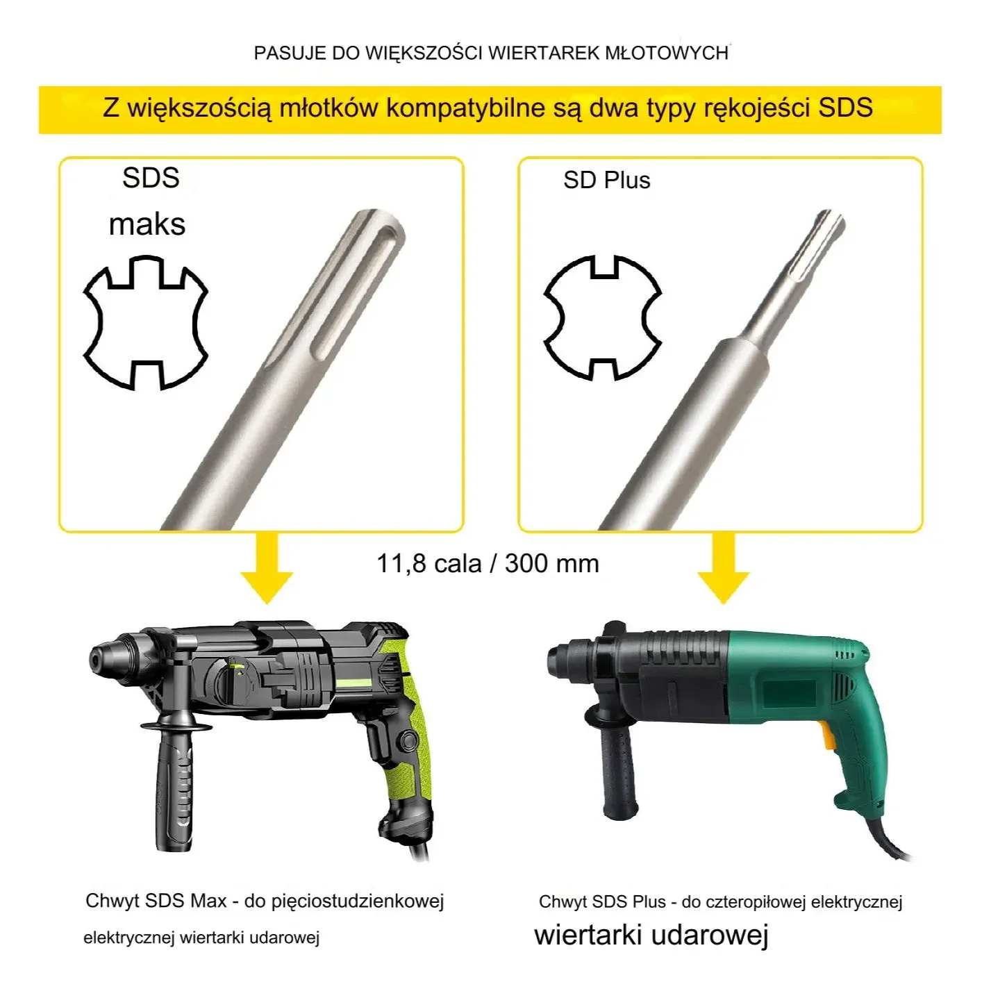 ➡️ Kompatybilność z SDS Plus i SDS Max: Możliwość użycia z większością wiertarek udarowych.