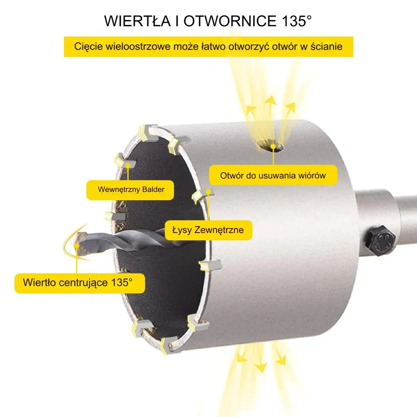➡️ Uniwersalny rozmiar wierteł: Średnice od 30 mm do 100 mm, idealne do różnych zastosowań.