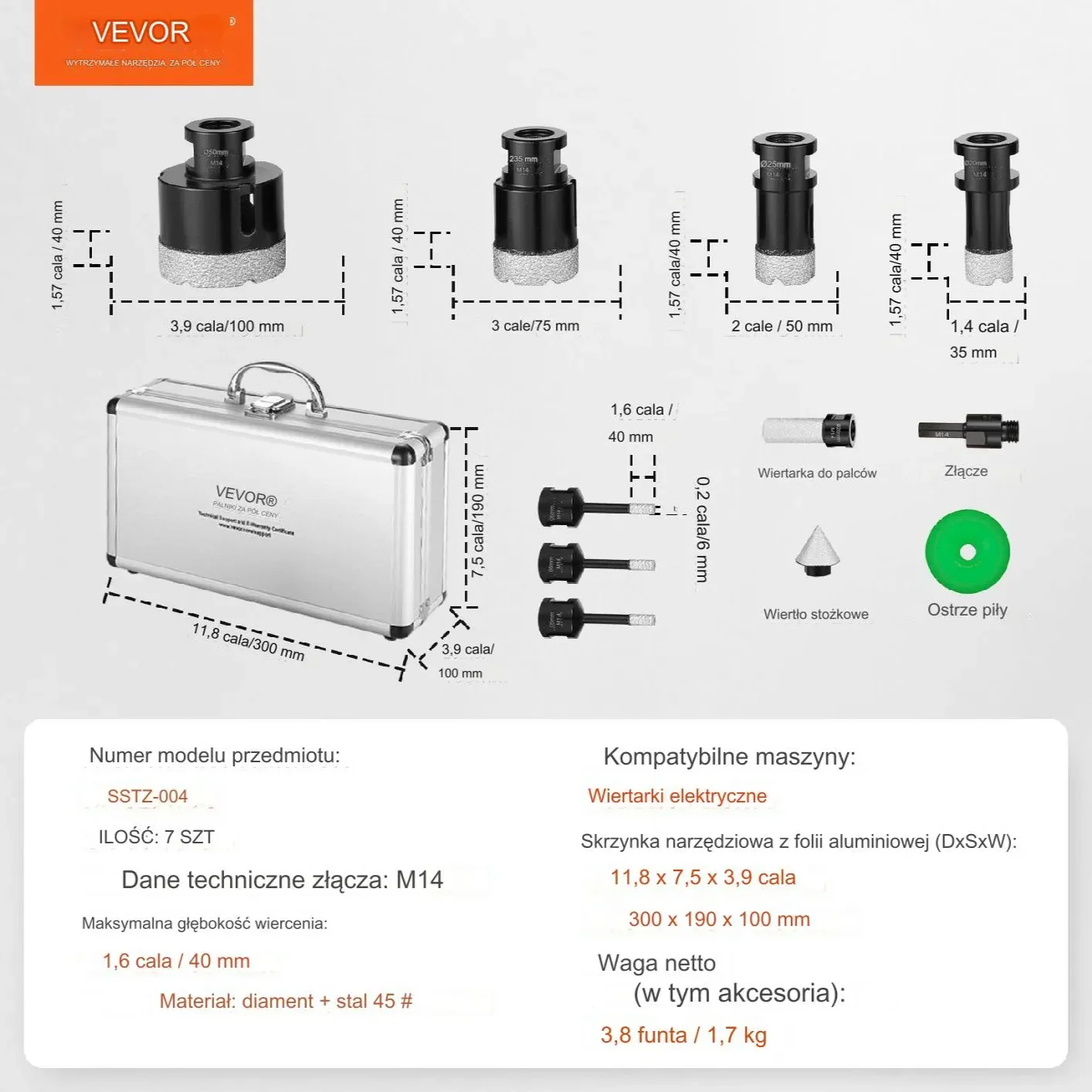 Zestaw wierteł diamentowych ✅ Koronki ✅ Otwornica ✅ Walizka 7 sztuk