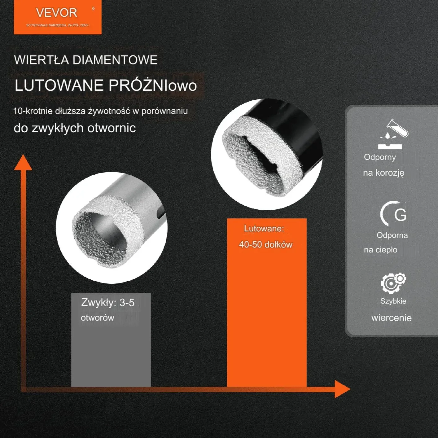 - ✅ Wysoka precyzja – ponad 10 razy większa trwałość niż standardowe otwornice.