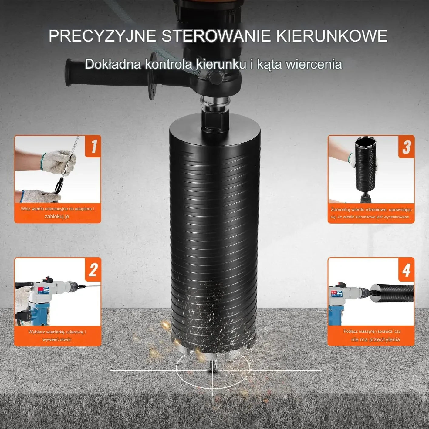 Nasze wiertło rdzeniowe zostało zaprojektowane z uniwersalnym gwintem 5/8″-11, co ułatwia szybki montaż na standardowym sprzęcie do wiercenia rdzeniowego lub wiertarkach ręcznych, zapewniając wszechstronność i wygodę.