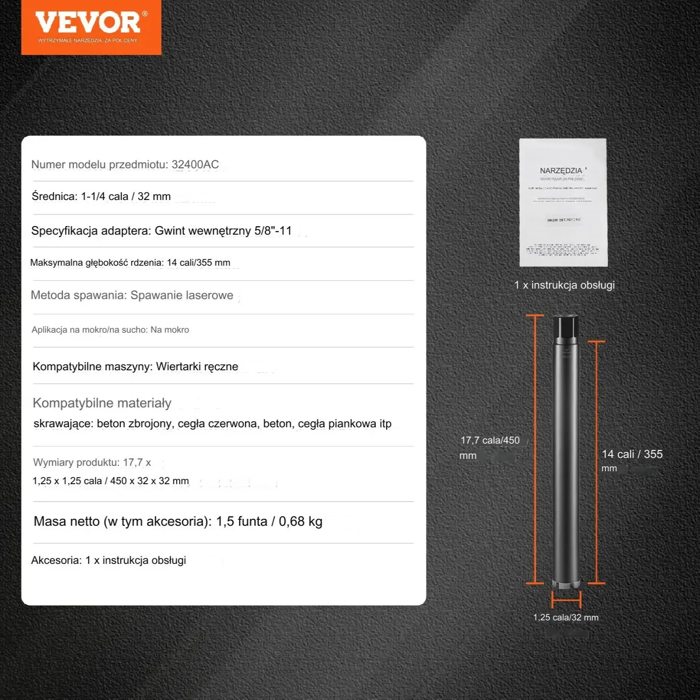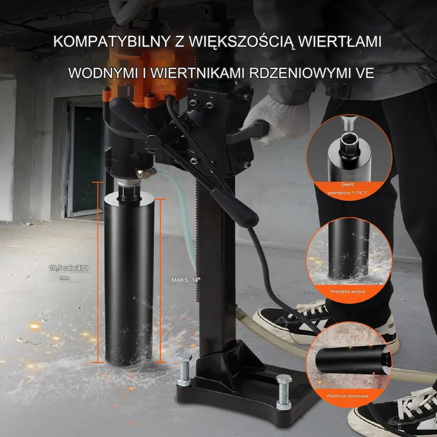 Nasze wiertło rdzeniowe zostało zaprojektowane z uniwersalnym gwintem 1-1/4″-7, co ułatwia szybki montaż na standardowym sprzęcie do wiercenia rdzeniowego, zapewniając wszechstronność i wygodę.