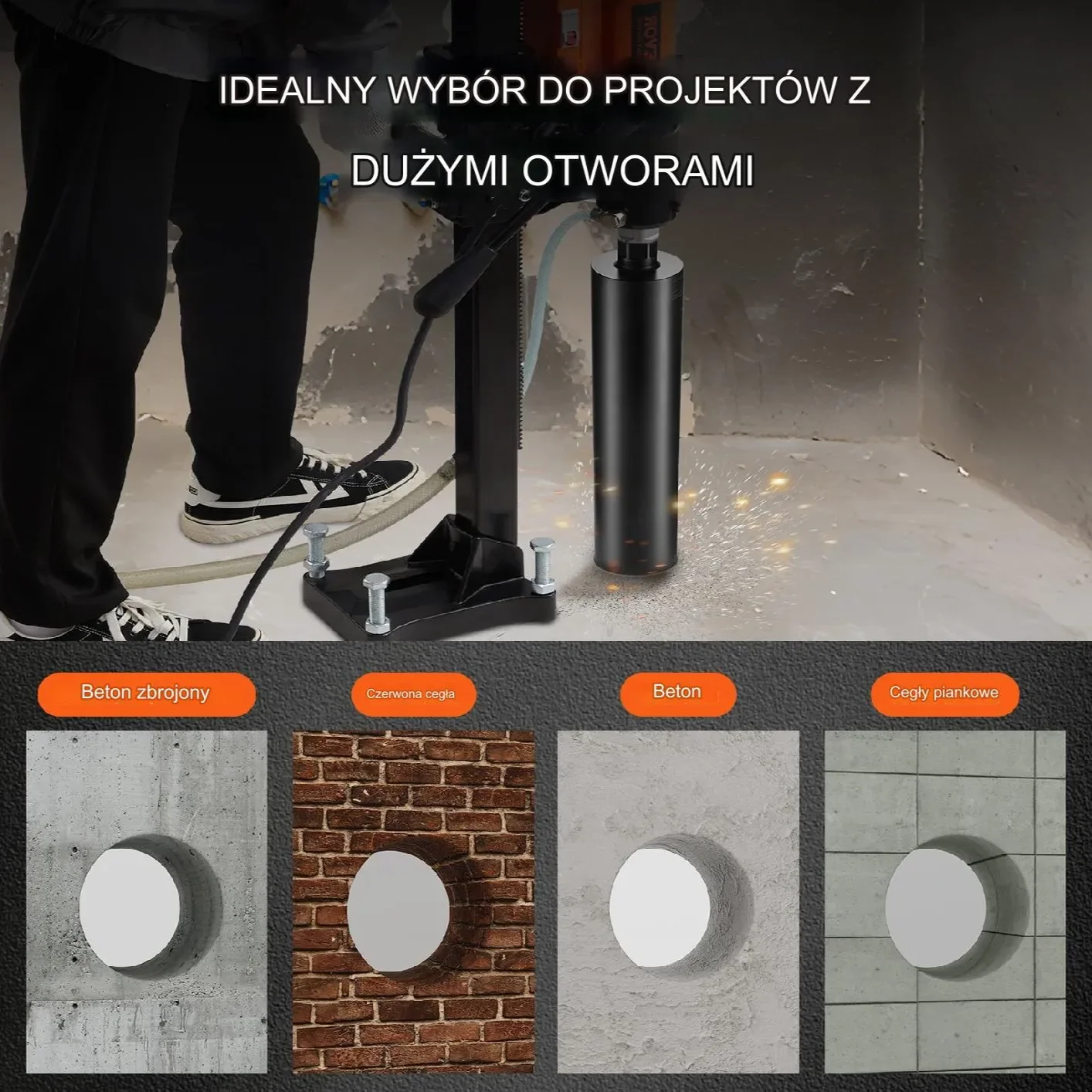 Nasze wiertło rdzeniowe do betonu zawiera dodatkową tarczę diamentową 80 mm do zadań cięcia, eliminując potrzebę oddzielnych zakupów. Pozwala to na szybkie i wydajne cięcie różnych twardych materiałów, w tym skał, betonu, ceramiki, metali i innych.