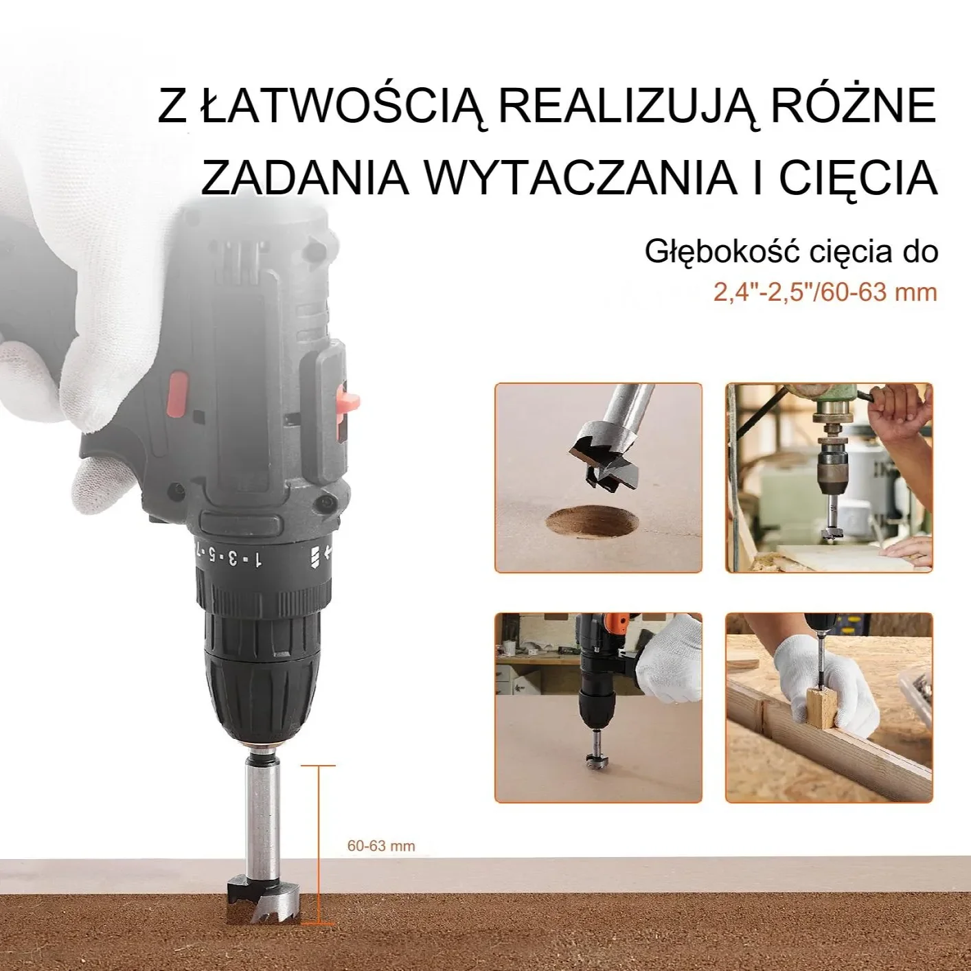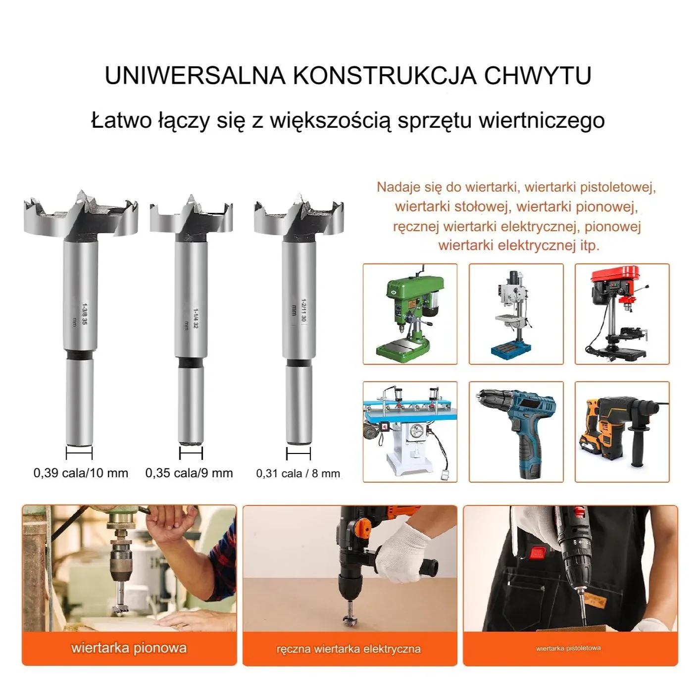 ➡️ Stolarstwo i meblarstwo – idealne do tworzenia otworów pod zawiasy i złącza.