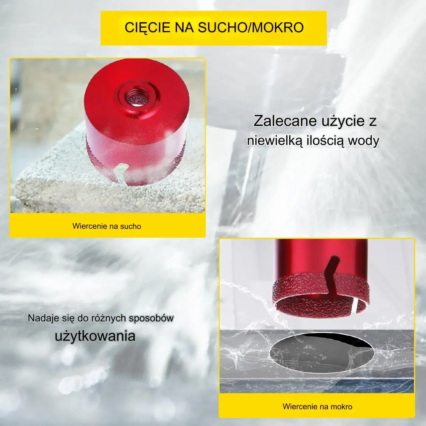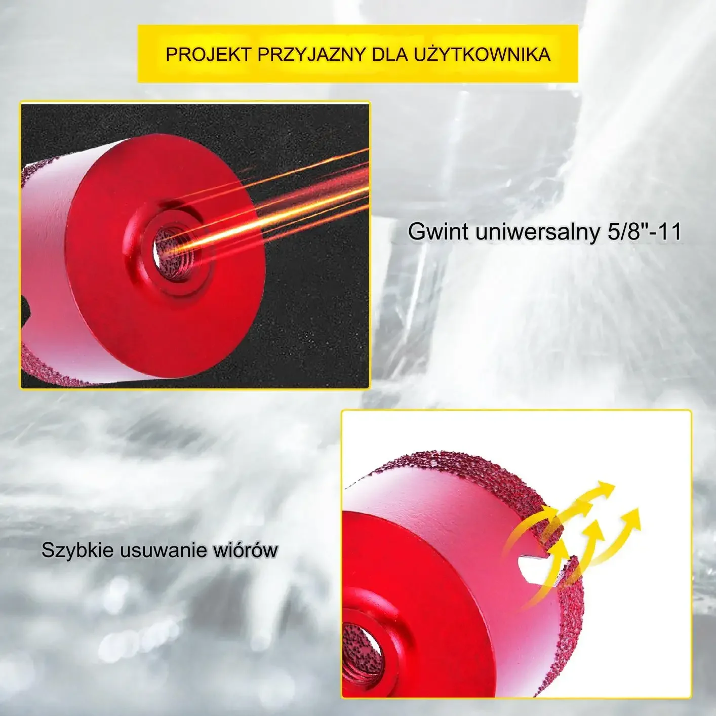➡️ Projekty dekoracyjne: Doskonały do tworzenia otworów w szkle, granicie czy marmurze.