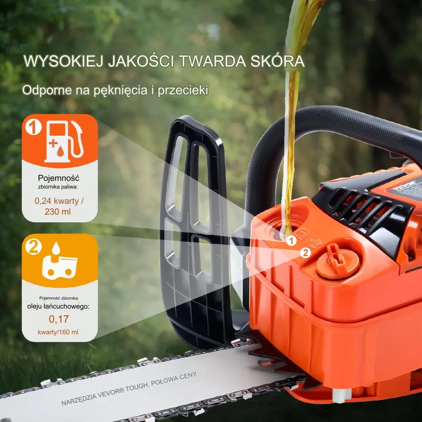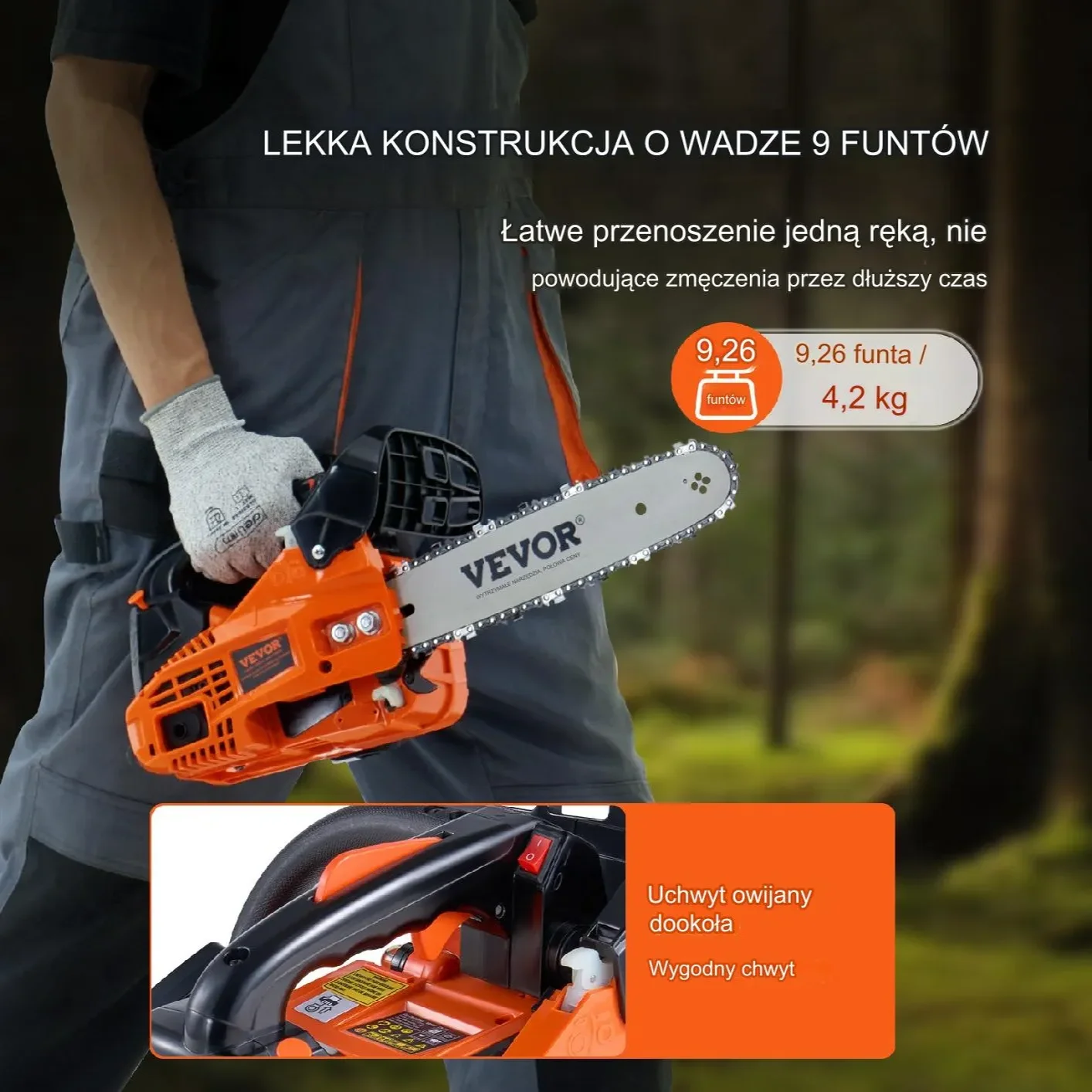 Wybierz naszą lekką gazową pilarkę łańcuchową, która poradzi sobie ze wszystkimi zadaniami cięcia drewna, zapewniając wygodę i efektywność.