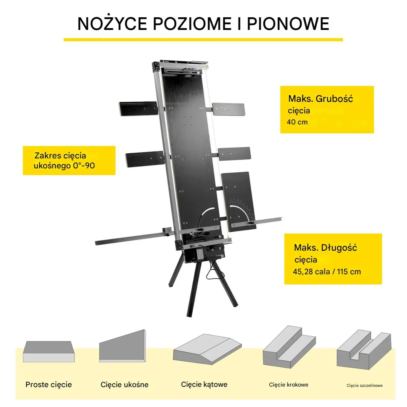 ✔ Regulowana długość i grubość cięcia – do 127 cm długości i 42 cm grubości.
