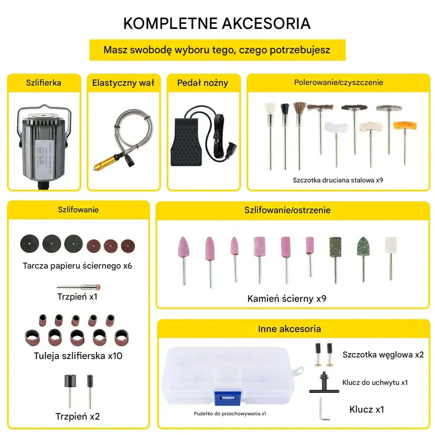 Start / Sklep / Dom i Ogród / Narzędzia / Szlifierki / Szlifierka jubilerska 780W z pedałem wisząca 131 części do polerowania
