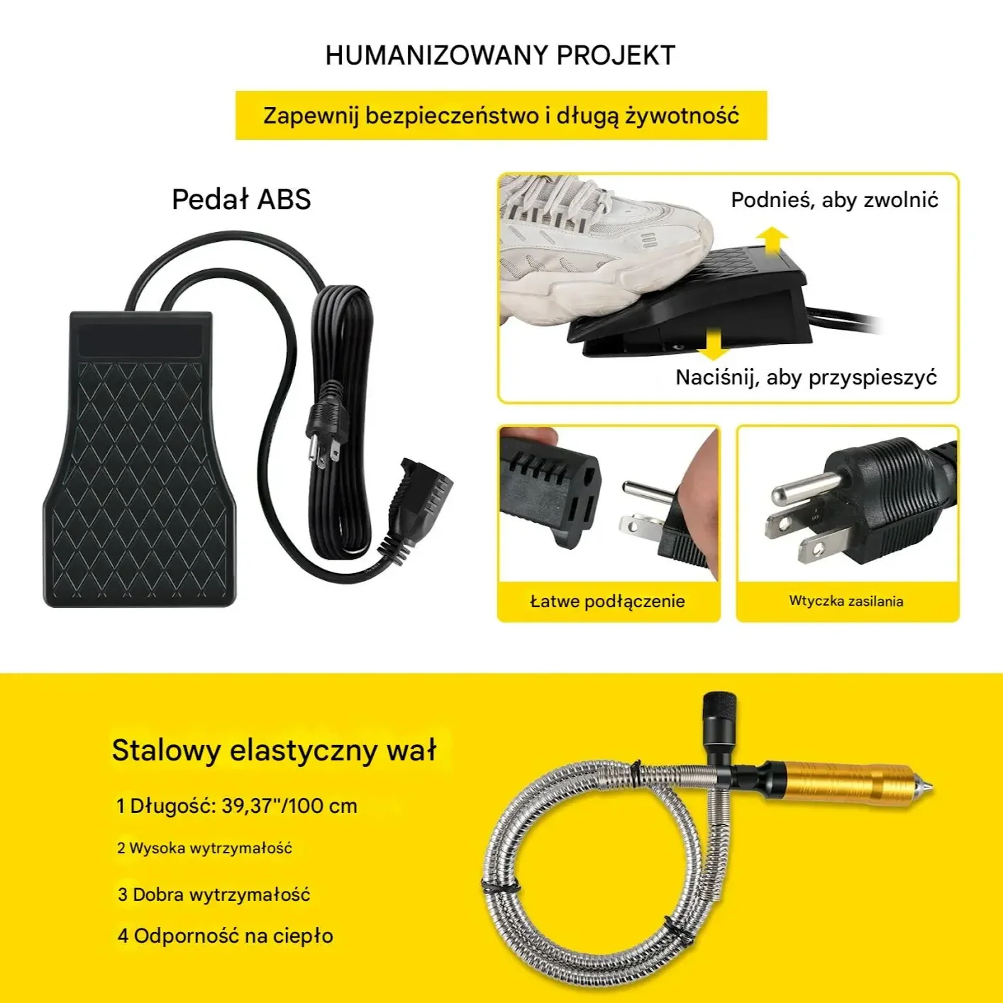 - ✅ Pedał nożny z płynną regulacją: Bezstopniowa regulacja obrotów 500-23000 RPM za pomocą pedału