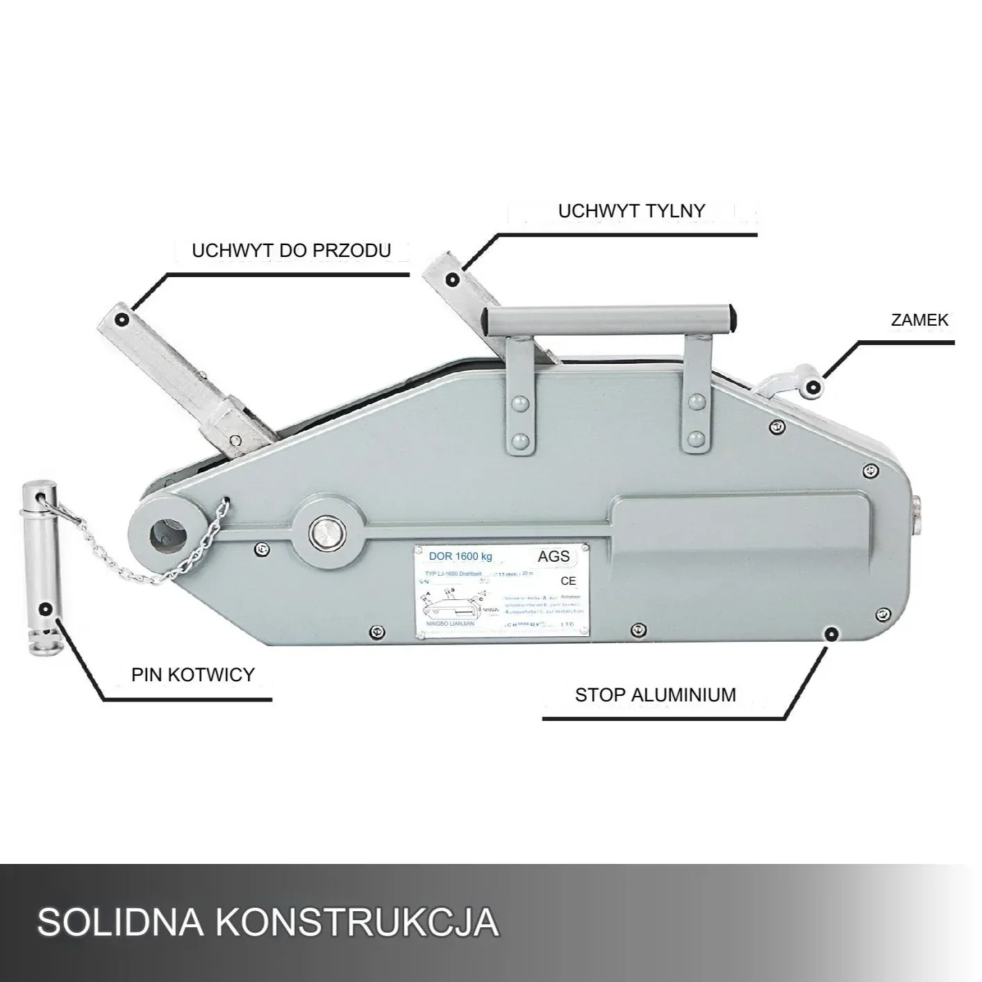 Wytrzymała stalowa lina o długości 7,6 m gwarantuje stabilność i bezpieczeństwo pracy. Kompaktowa konstrukcja i łatwy montaż czynią wciągarkę niezastąpionym narzędziem w każdej branży wymagającej podnoszenia ciężkich elementów.