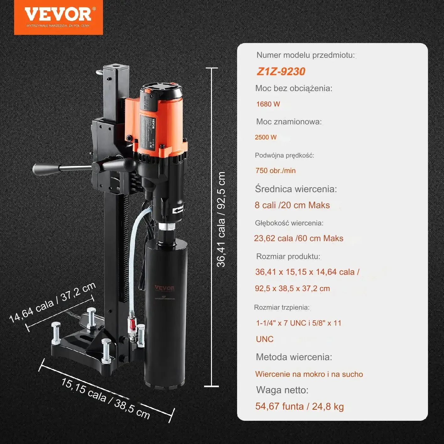 - Średnica wiercenia (wiertło rdzeniowe): 40 mm