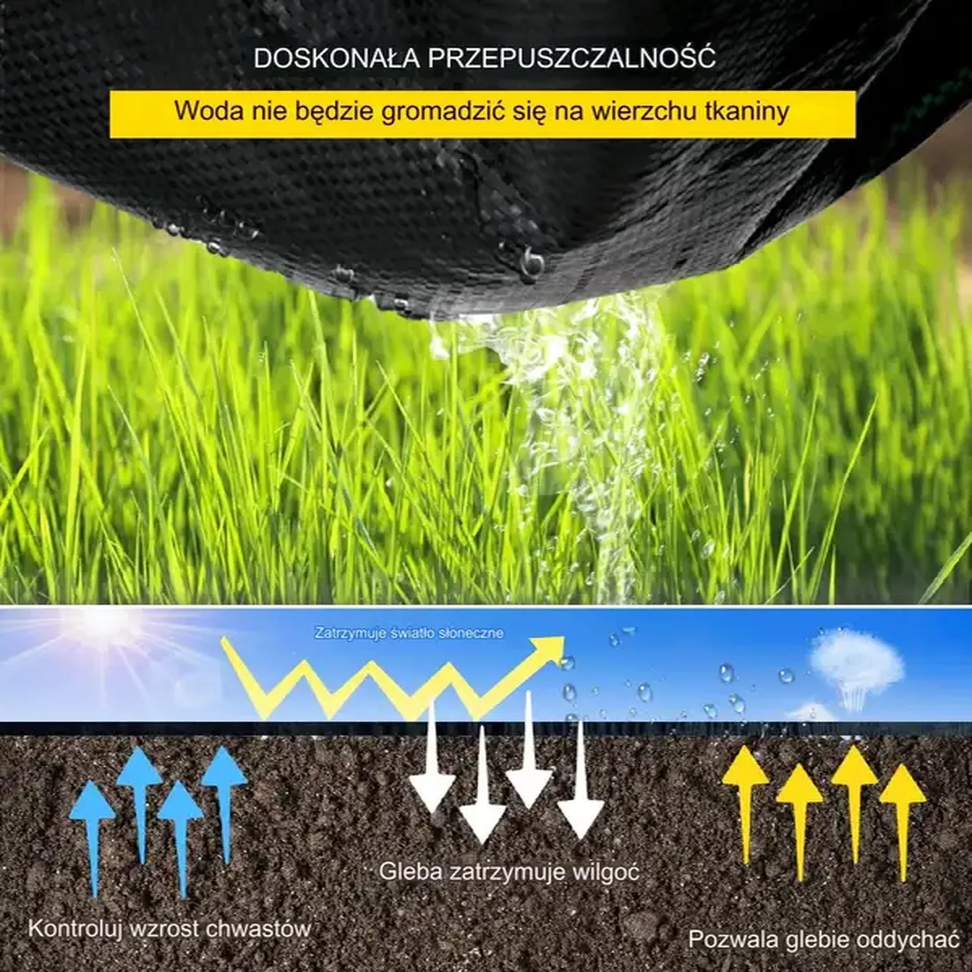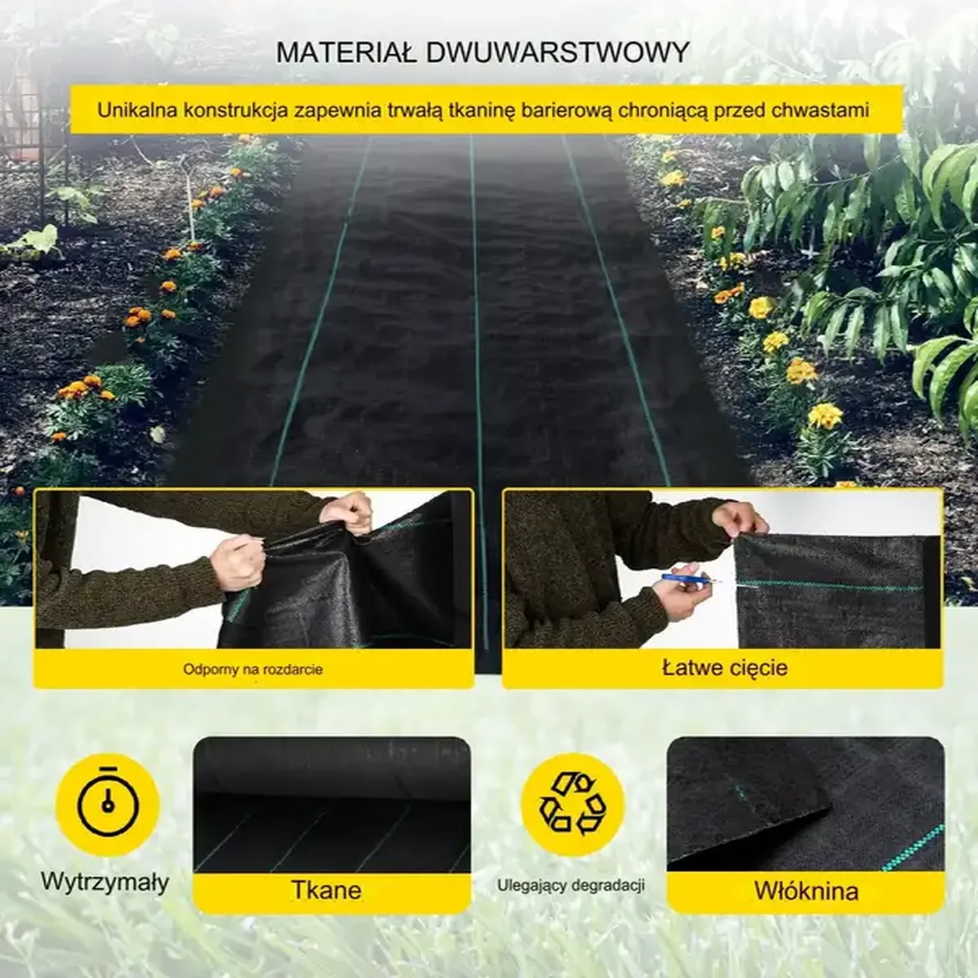 • ➡️ Skuteczna eliminacja chwastów: Gęsta struktura blokuje światło, uniemożliwiając wzrost niechcianej roślinności.
