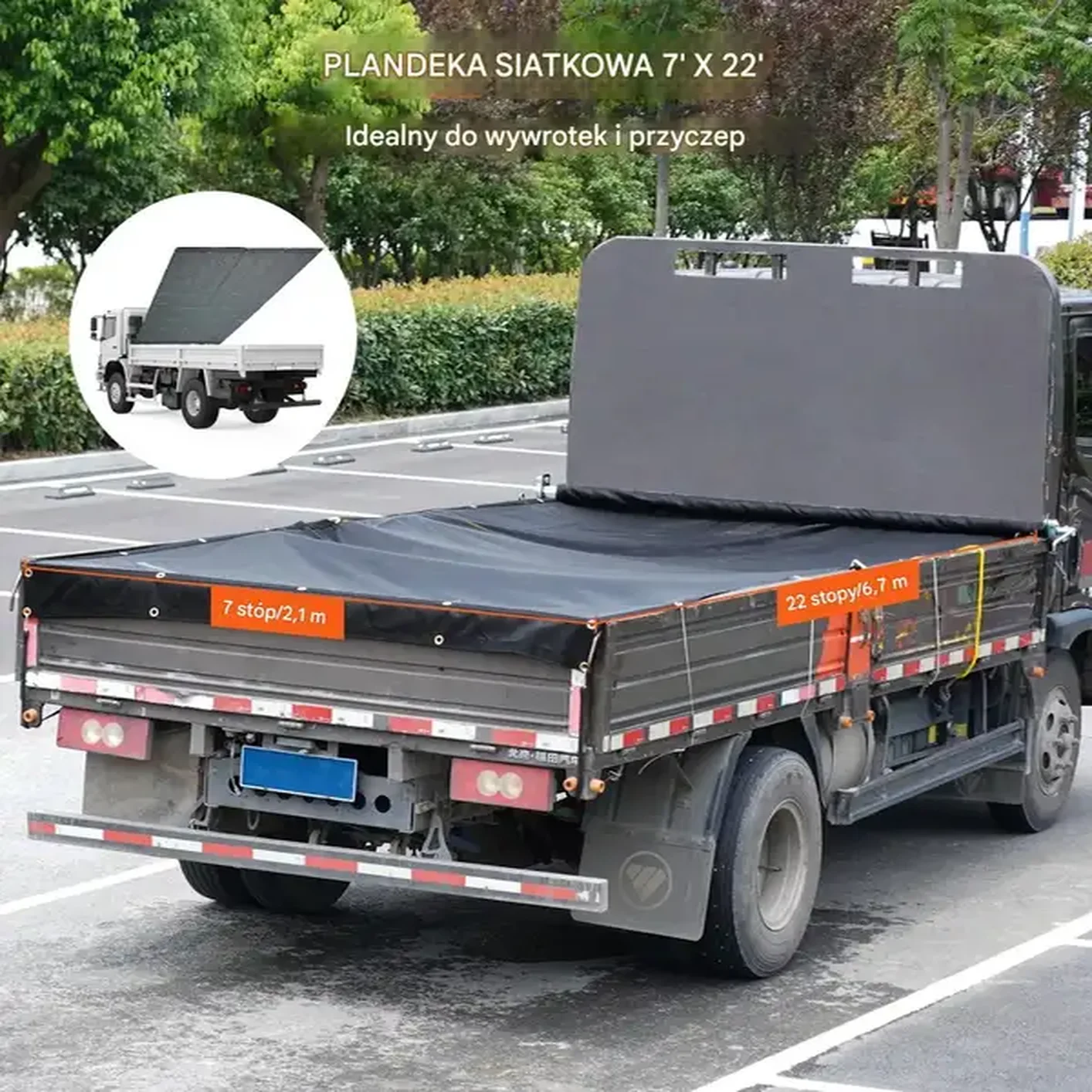 Plandeka na wywrotkę 2.1×6.7 m PVC wzmocniona oczka ciężka siatka uniwersalna