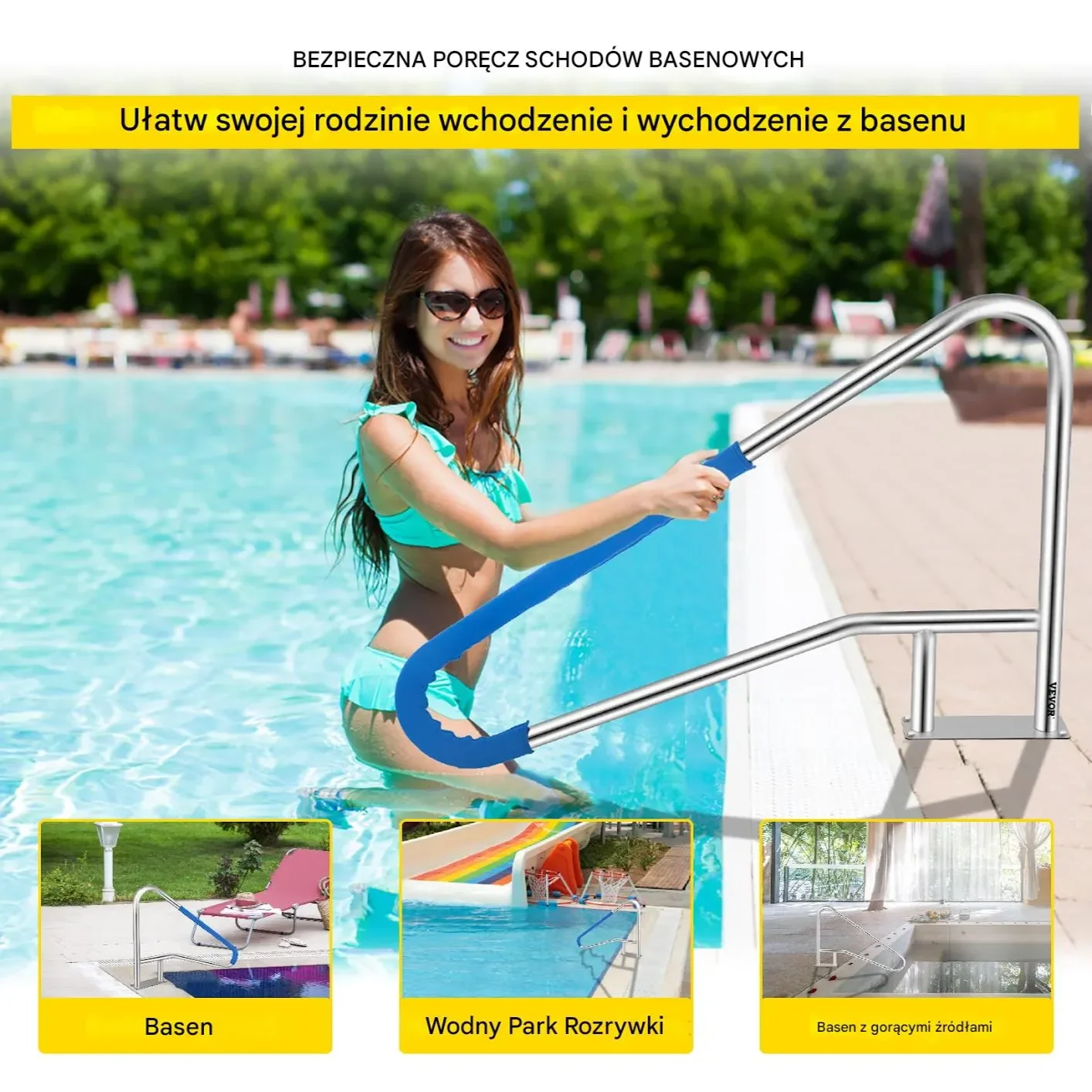 Bezpieczna i wytrzymała poręcz basenowa – wykonana z wysokiej jakości stali nierdzewnej 304, odporna na korozję i intensywne użytkowanie. Dzięki ergonomicznemu kształtowi oraz antypoślizgowej osłonie zapewnia stabilne i komfortowe wejście oraz wyjście z basenu.