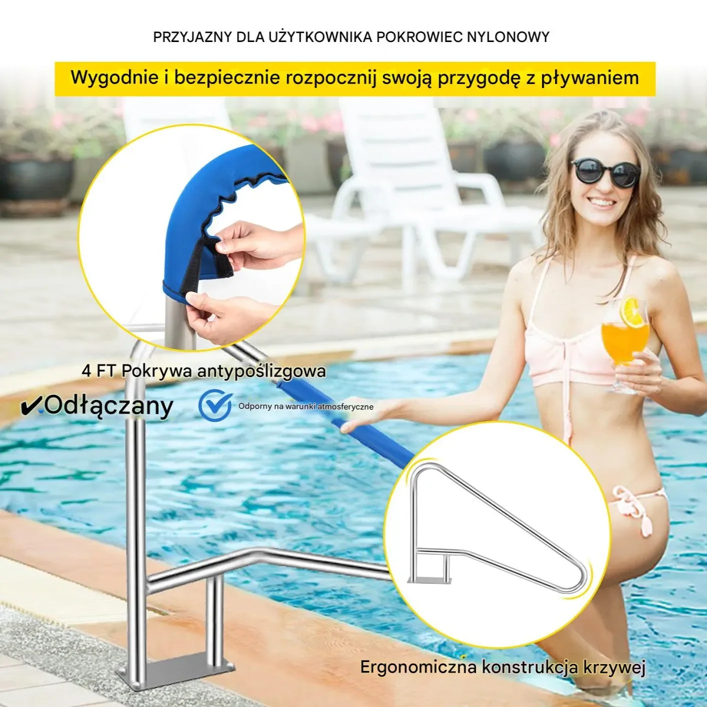 - ✅ Bezpieczeństwo: Ułatwia wejście i wyjście z basenu