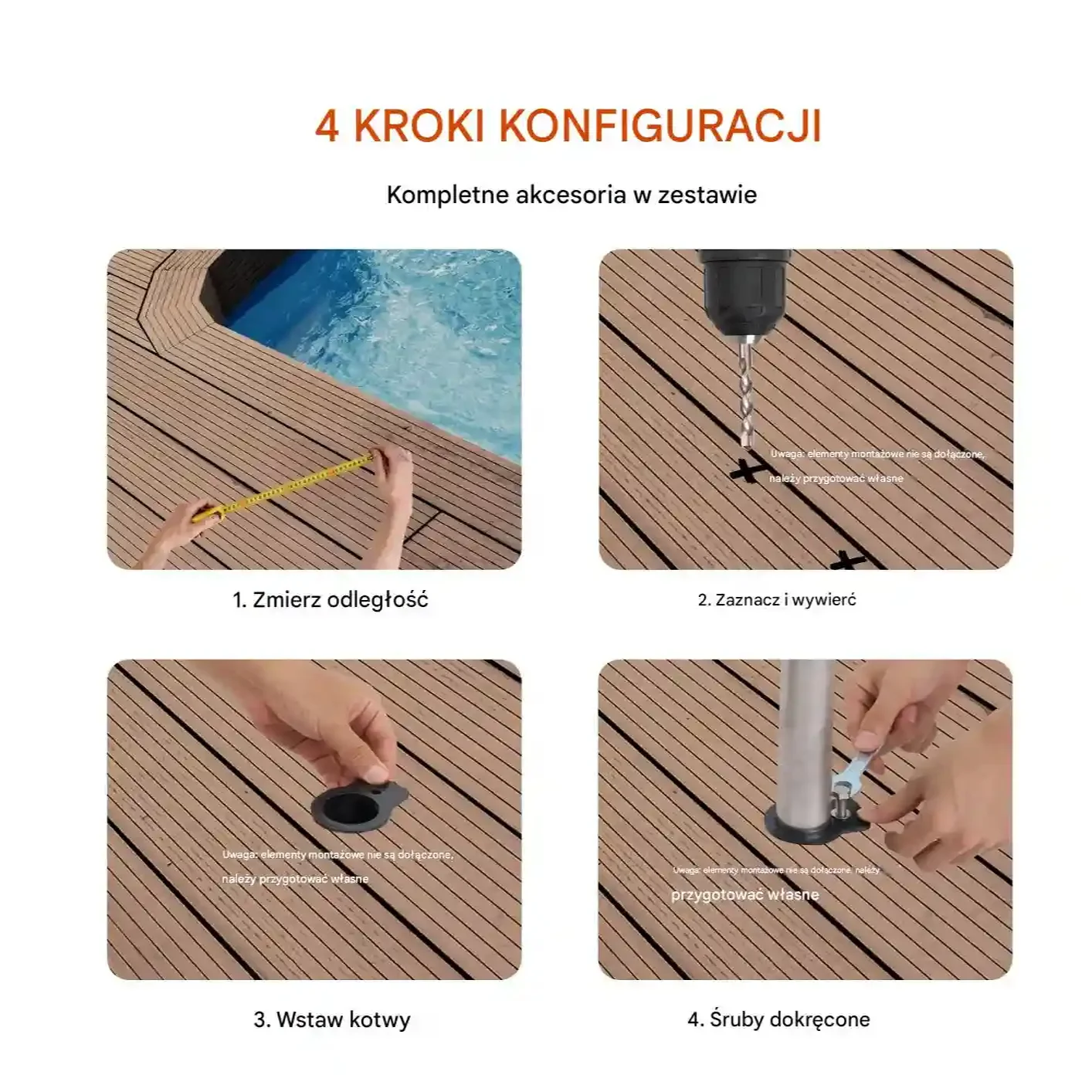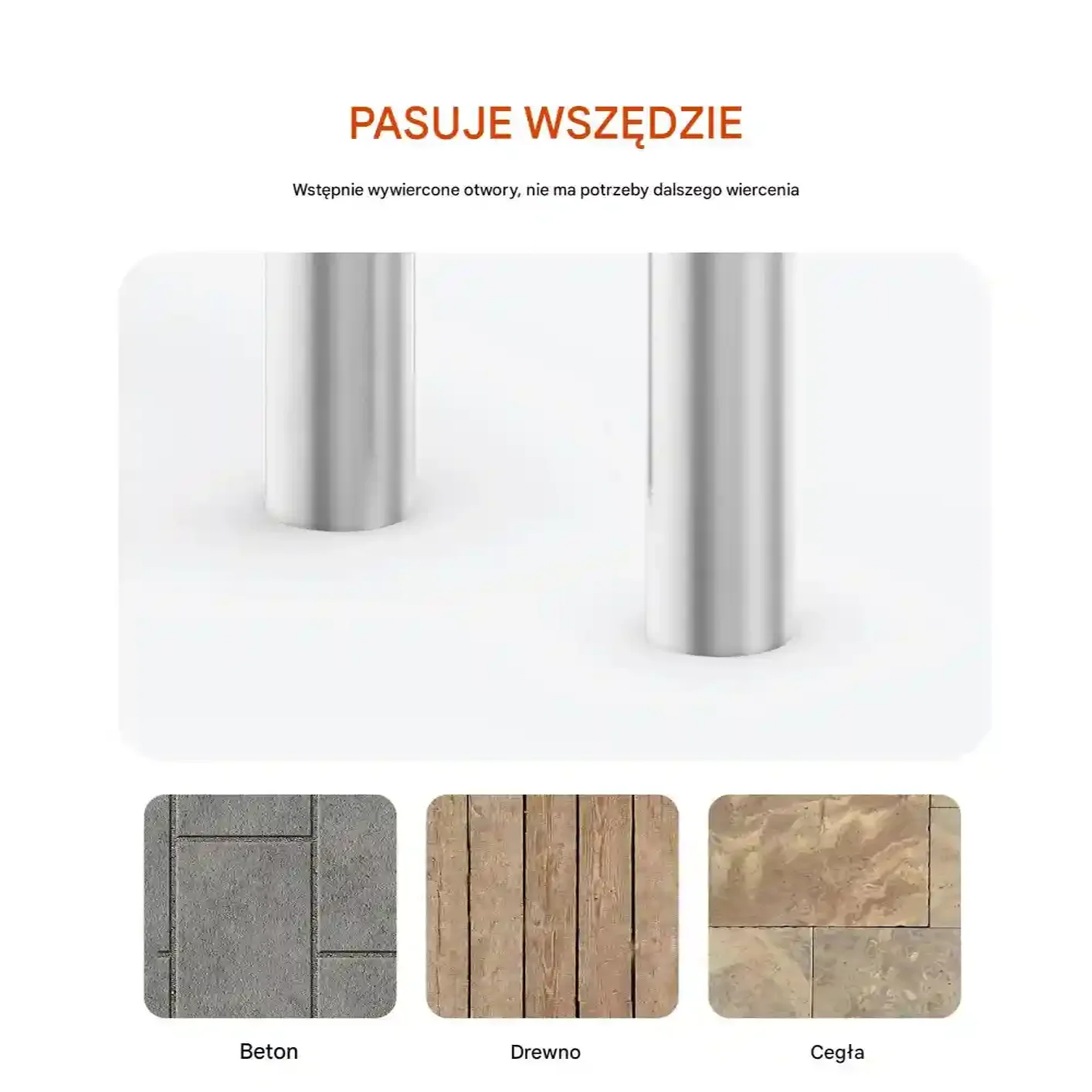 - ✅ Uniwersalny montaż: możliwość montażu w betonie, drewnie, płytkach lub marmurze (akcesoria montażowe należy dokupić osobno)