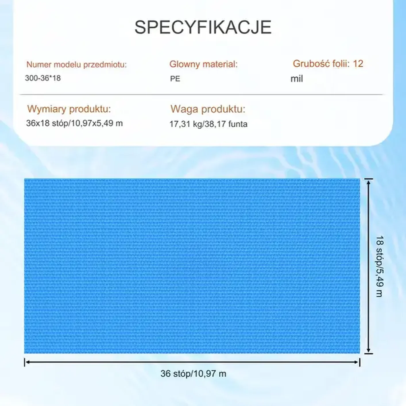 Pokrywa solarna do basenu 11×5,5 m gr. 0,3 mm niebieska ogranicza parowanie