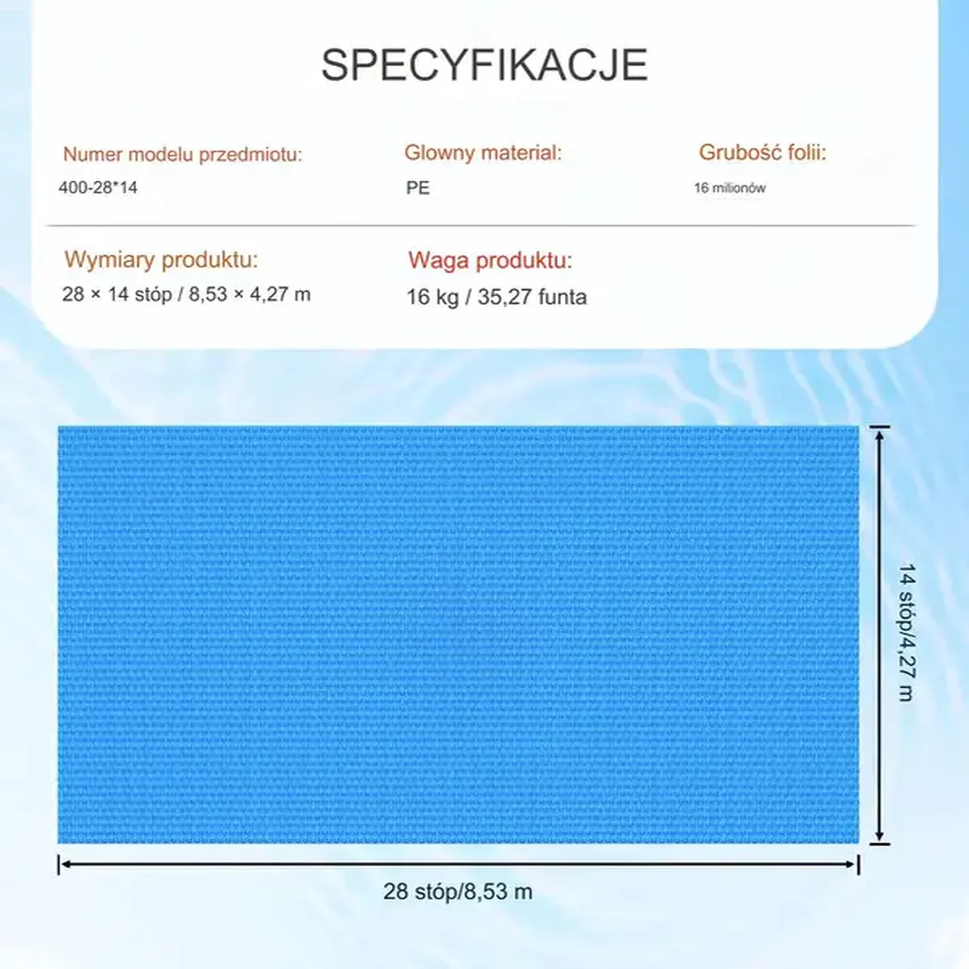 • ✅ Duży rozmiar 10,97 m × 5,49 m – idealna do dużych basenów prostokątnych i niestandardowych.
