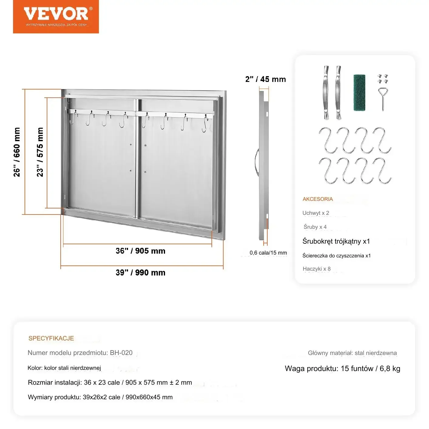 Drzwi do Grilla 787×609 Podwójne Stal Nierdzewna Uchwyty Haki Kuchnia Zewn.