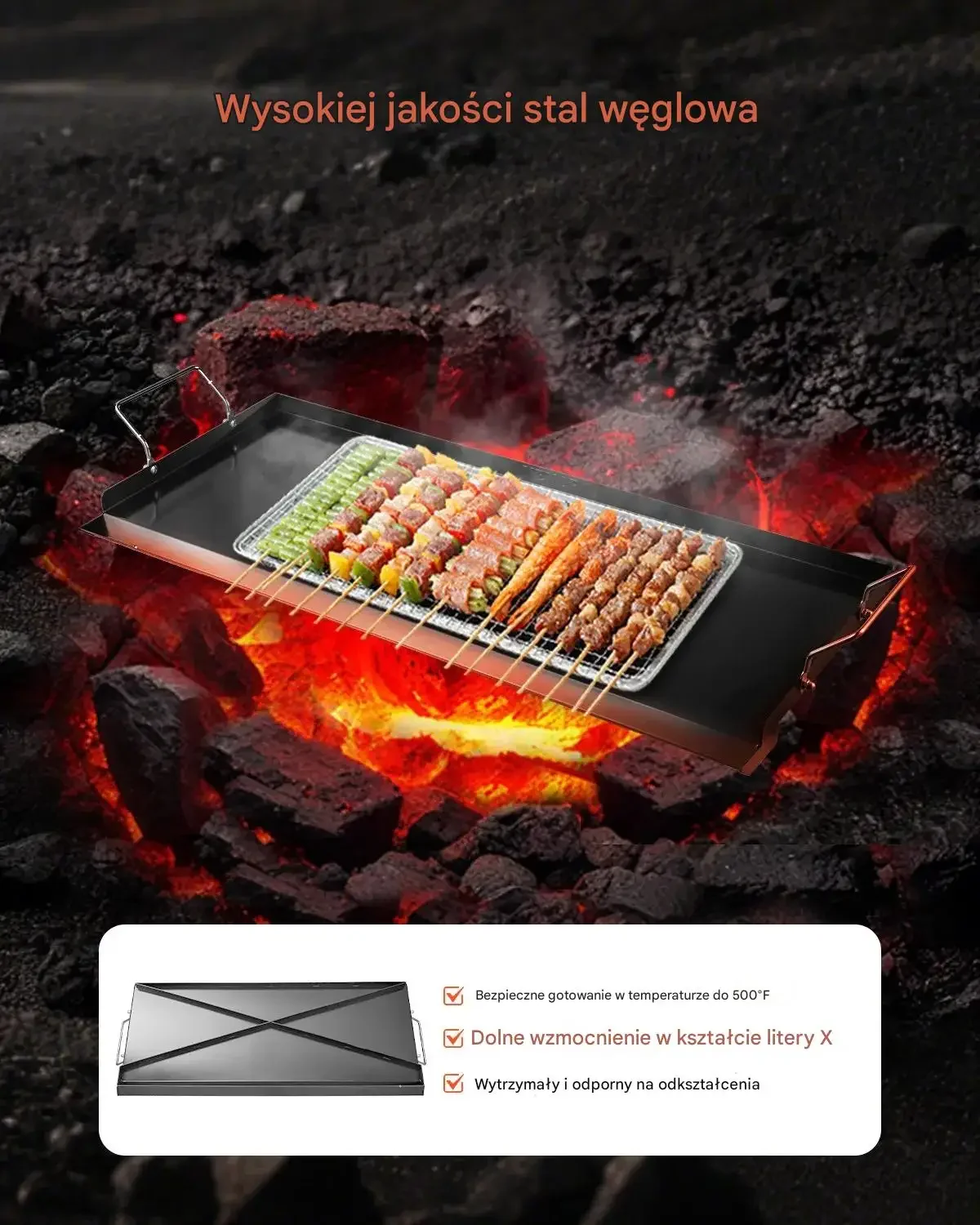 - ➡️ Długotrwała żywotność: Wzmocniona konstrukcja spodu skutecznie zapobiega wyginaniu się sprzętu pod wpływem ciepła
