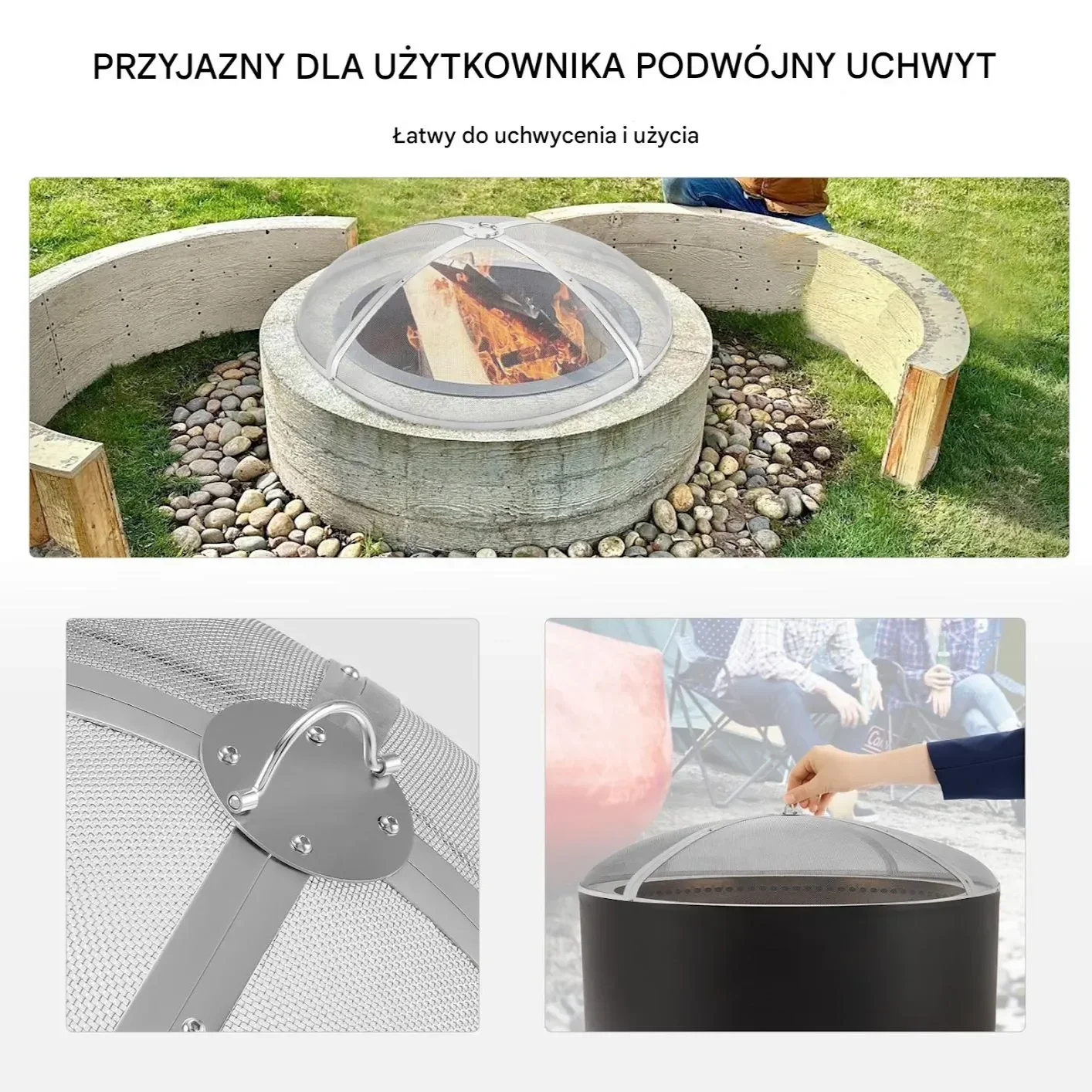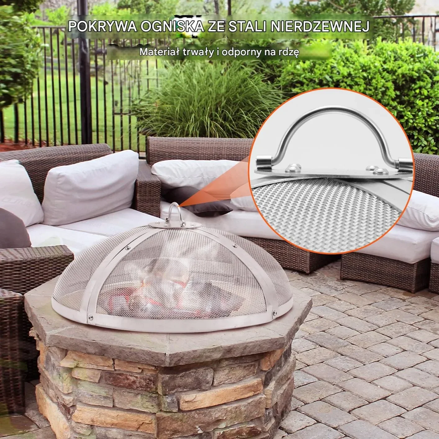 - ✅ Średnica osłony 102 cm – dopasowana do większości okrągłych palenisk.