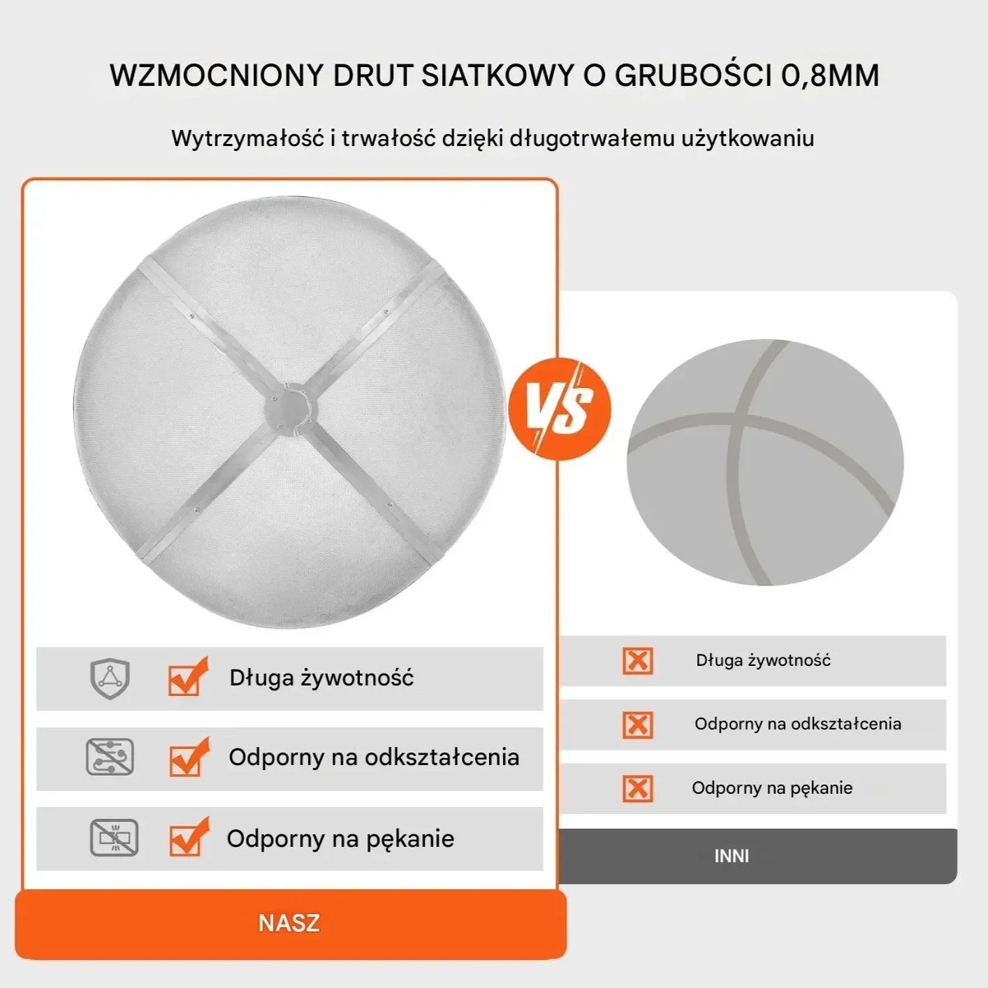 - Grubość drutu siatki: 0,8 mm