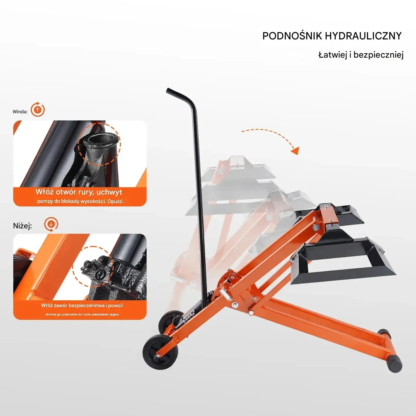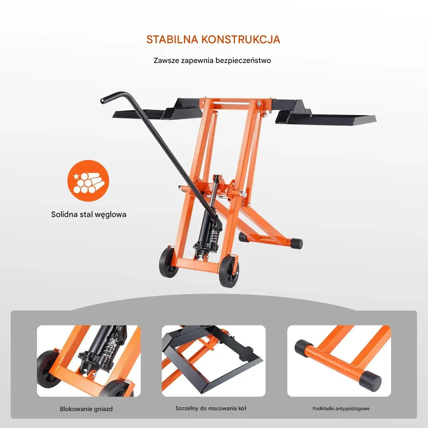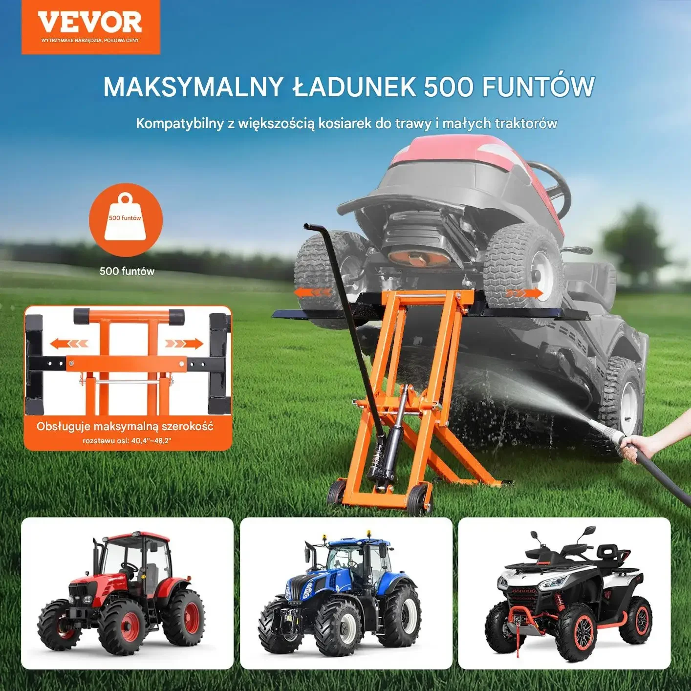 Podnośnik do Traktorka Kosiarki 225 kg – Hydrauliczny, Regulowany, Składany