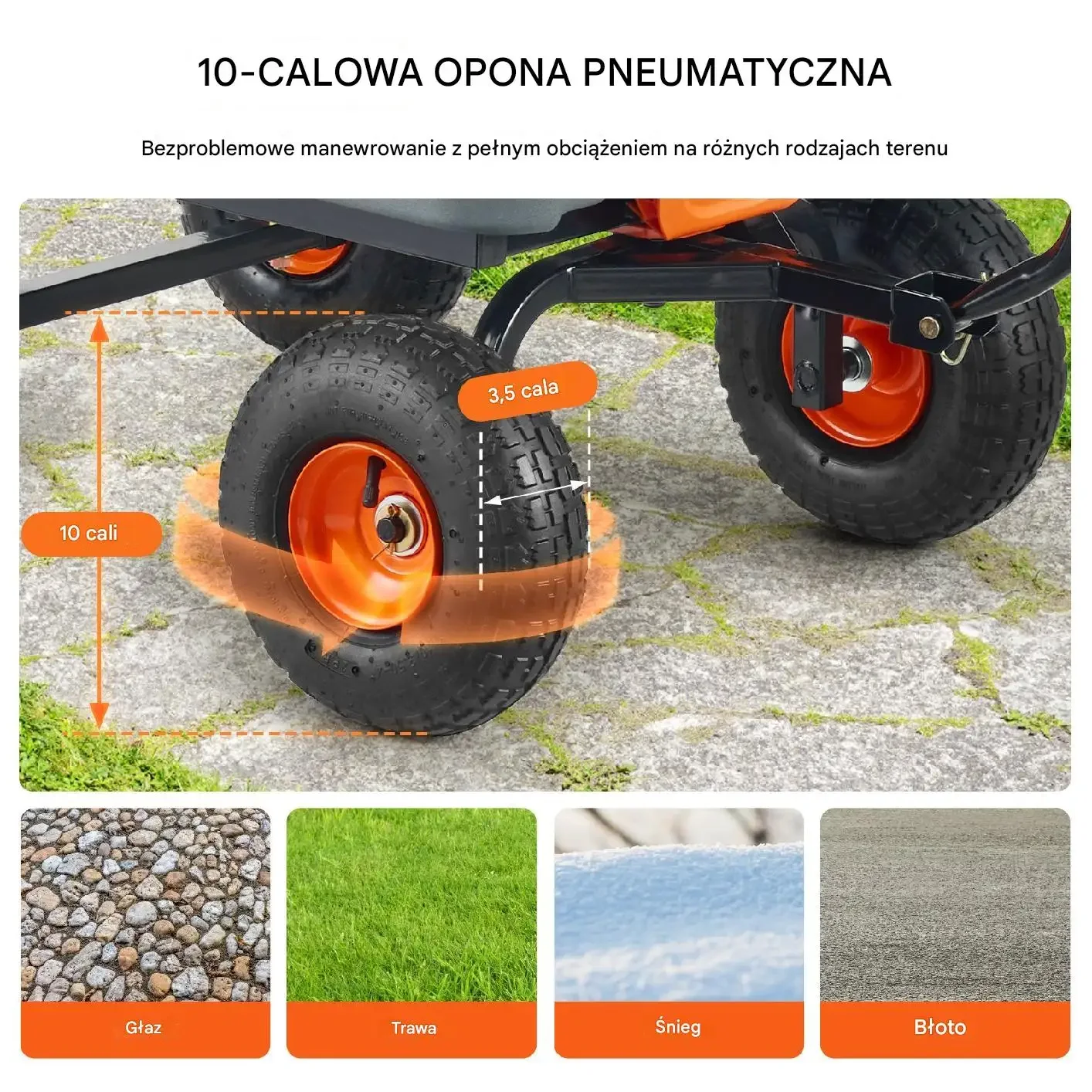 Wózek ogrodowy samowyładowczy wywrotka 113 L nośność 363 kg z gumowymi kołami 25,5 cm