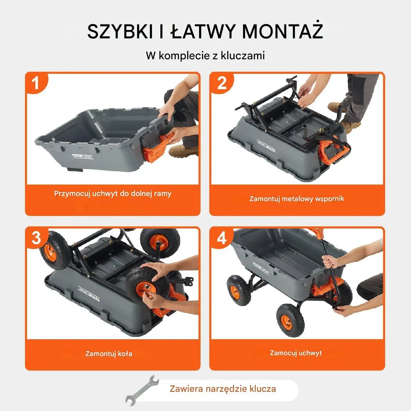 - 1 × Wózek ogrodowy samowyładowczy z tacą 113 L