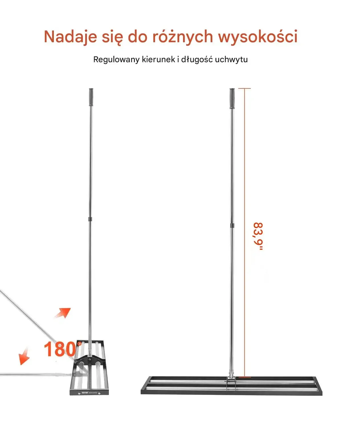 Nadaje się do różnych wysokości. Regulowany kierunek i długość uchwytu. Całkowita długość uchwytu po rozłożeniu: 213,2 cm.